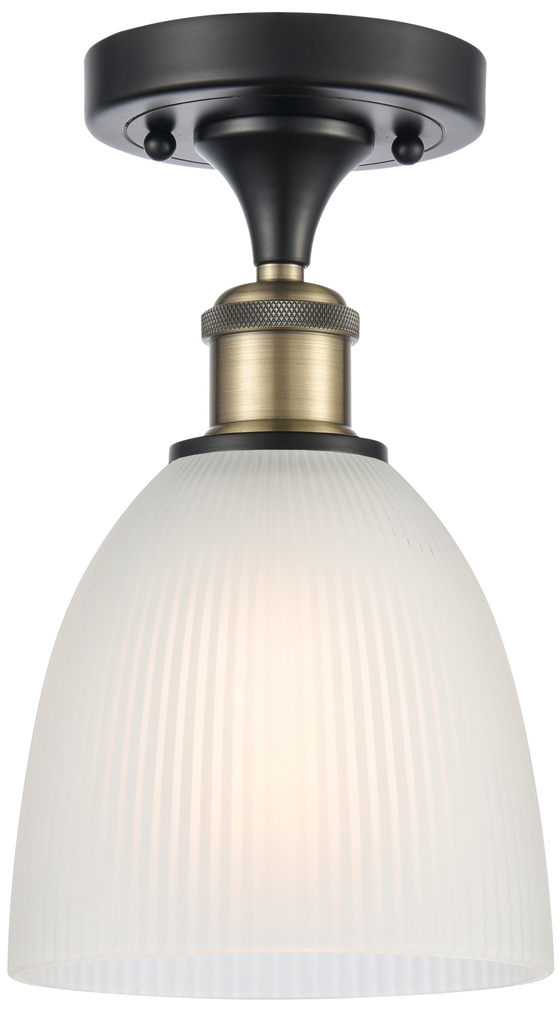 Castile 6" Wide Black Brass Semi Flush Mount w/ White Shade