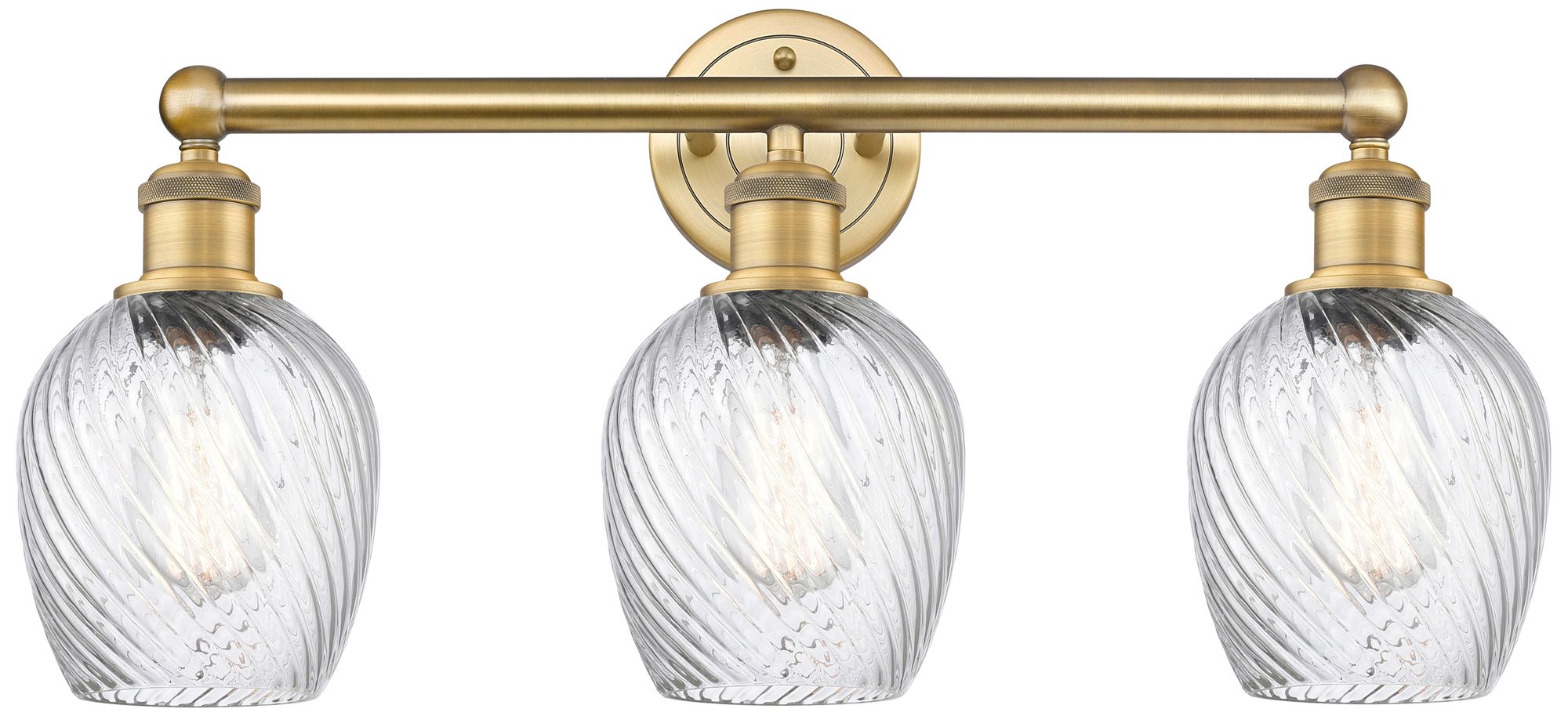 Salina 23"W 3 Light Brushed Brass Bath Light With Clear Spiral Fluted
