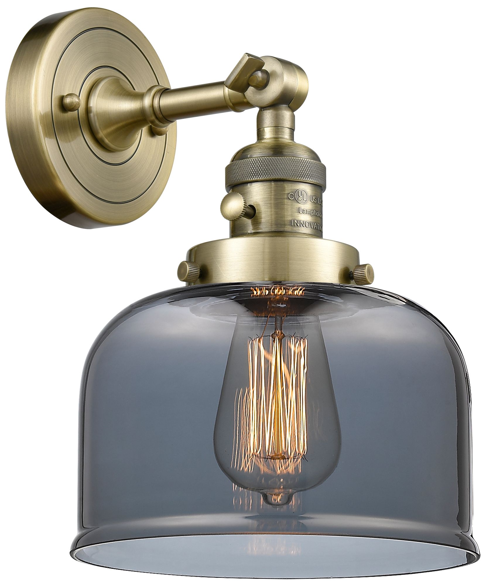 Bell 8" Antique Brass Sconce w/ Plated Smoke Shade