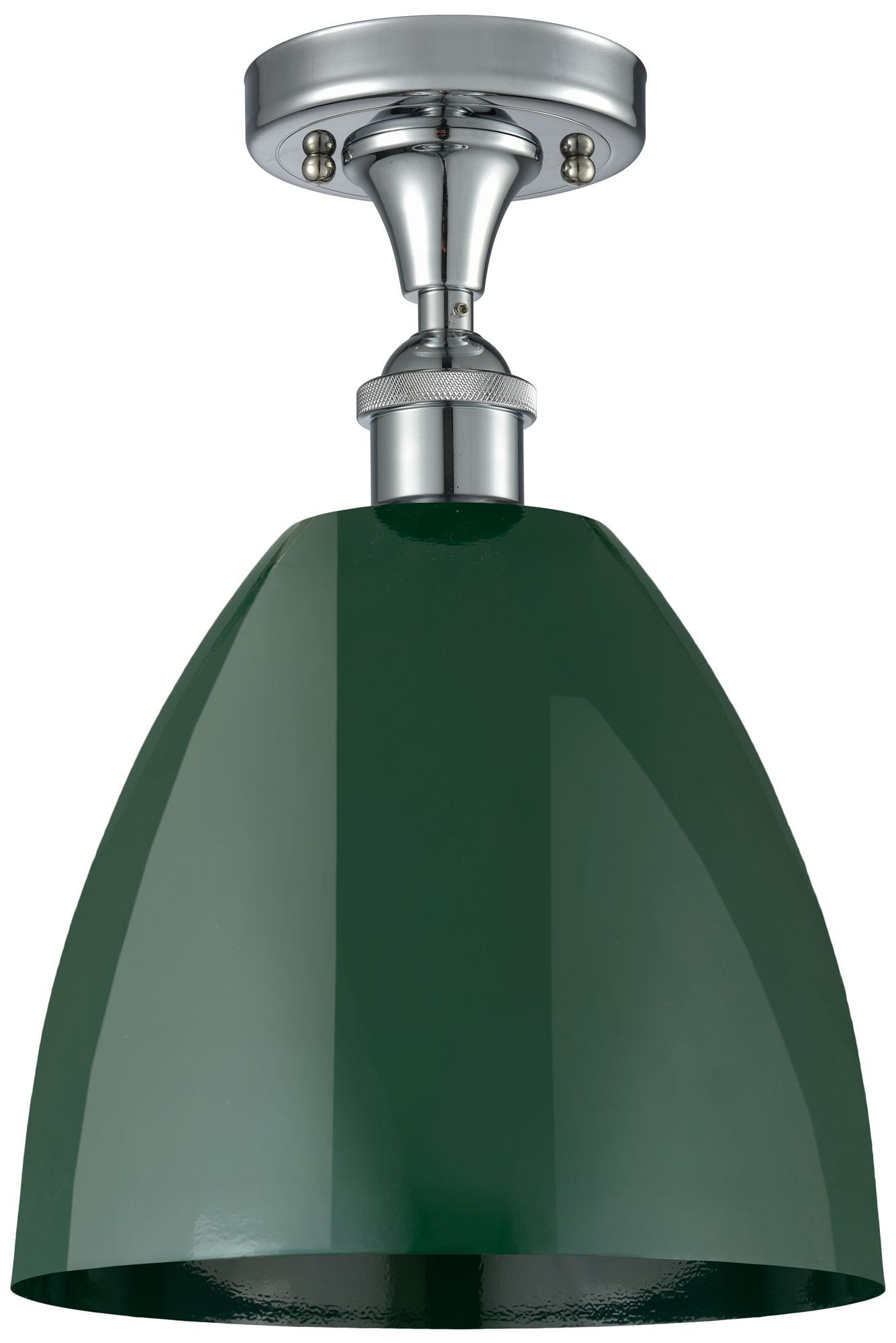 Plymouth Dome 9" Wide Polished Chrome Semi Flush Mount w/ Green Shade