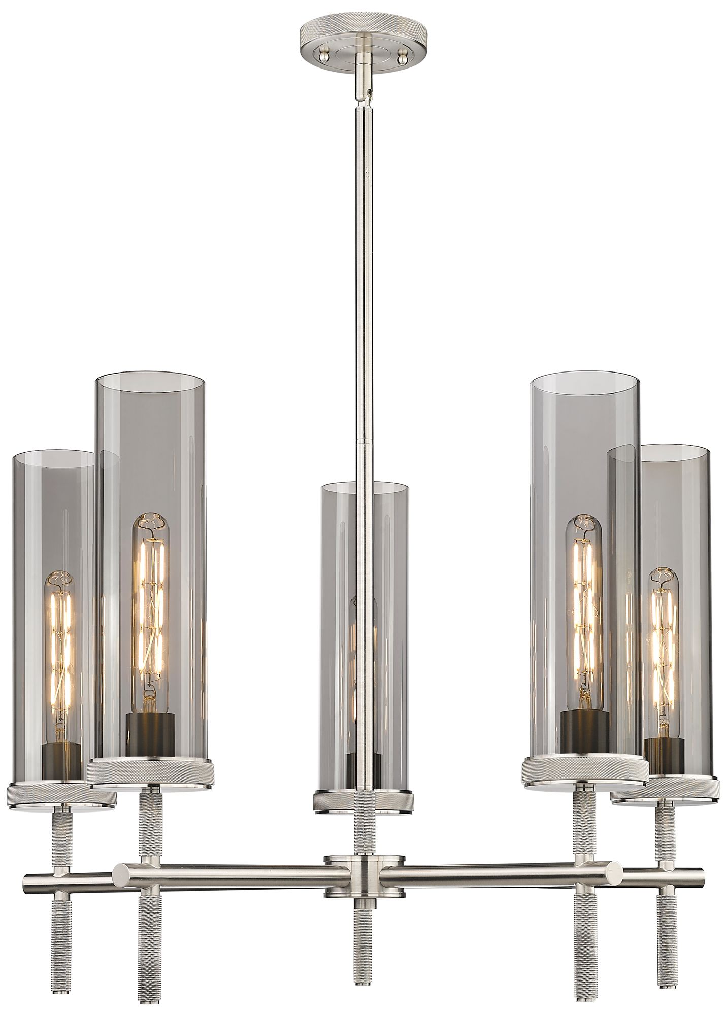 Lincoln 26.75" Wide 5 Light Stemmed Satin Nickel Chandelier w/ Smoke S