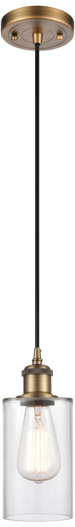 Clymer 4" Brushed Brass Cord Hung Mini Pendant w/ Clear Shade