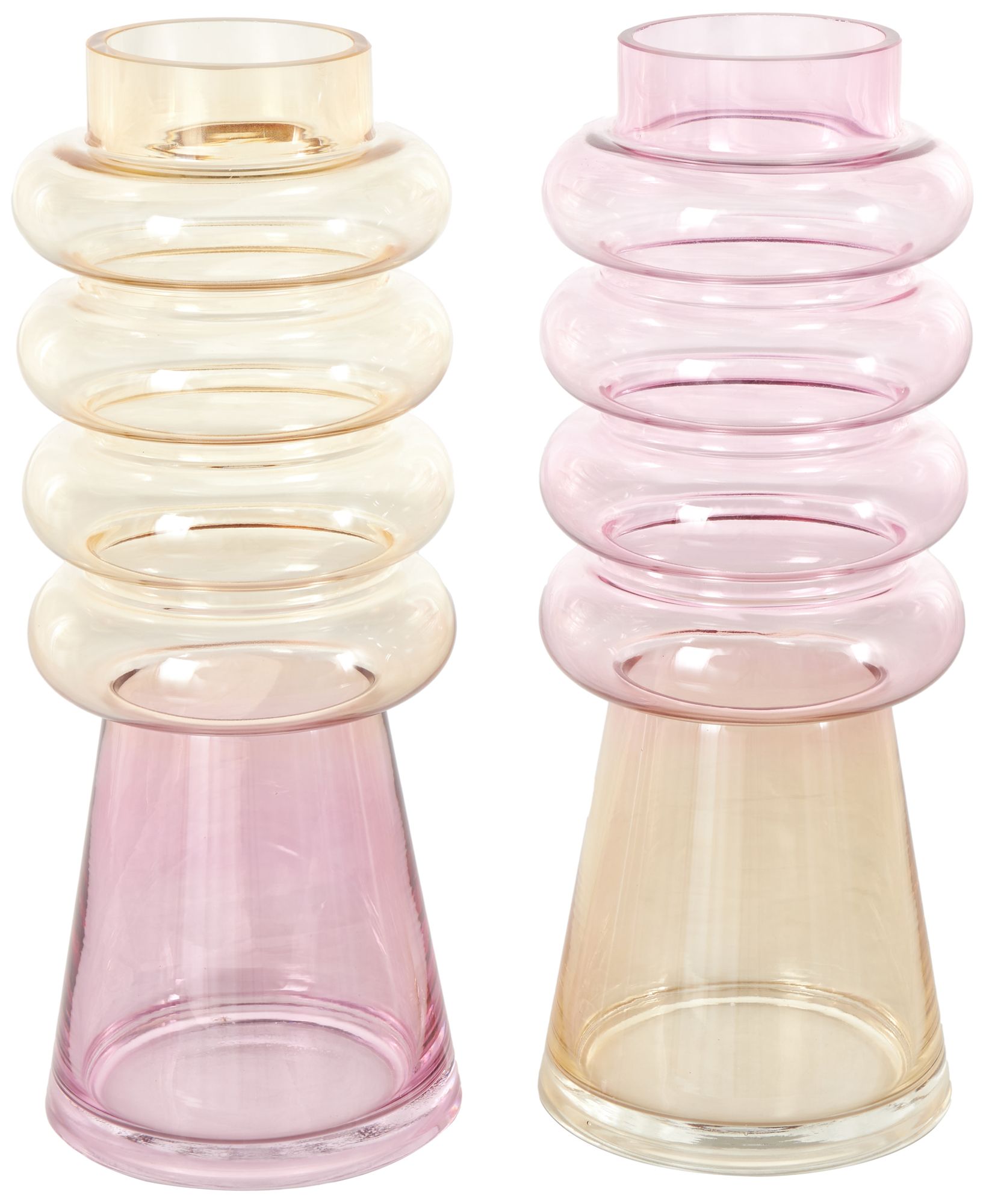 Multi Colored Glass Eclectic Vase, S/2 5"W, 12"H