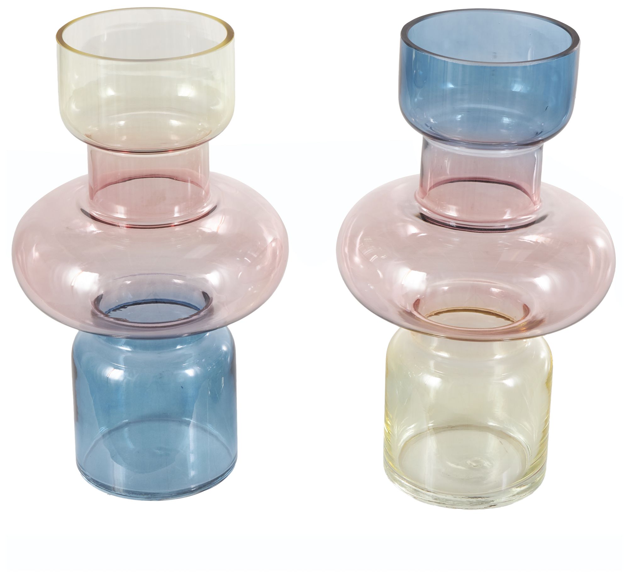 Multi Colored Glass Eclectic Vase, S/2 7"W, 12"H