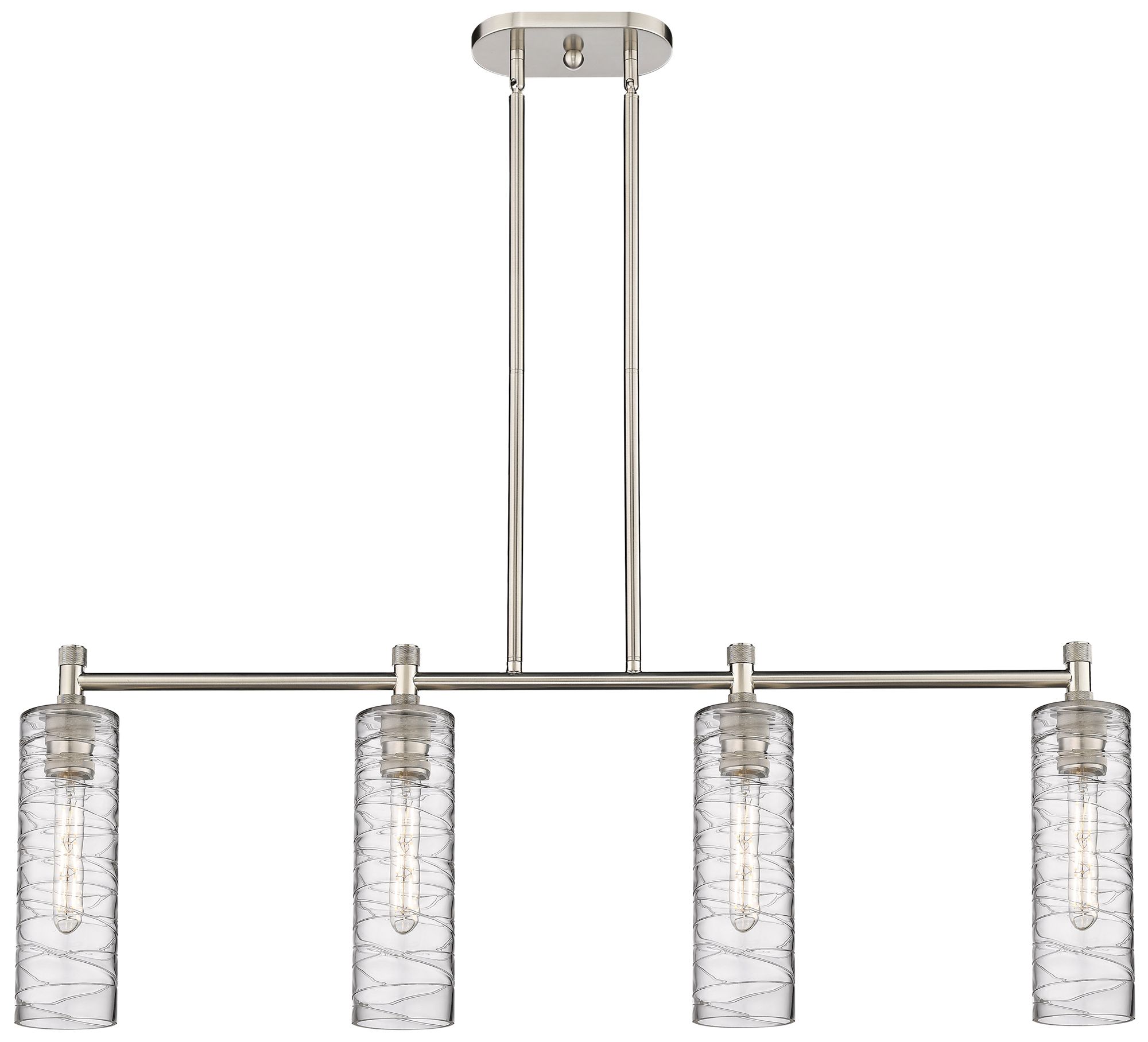 Crown Point 43.75"W 4 Light Satin Nickel Stem Island Light w/ Swirl Sh