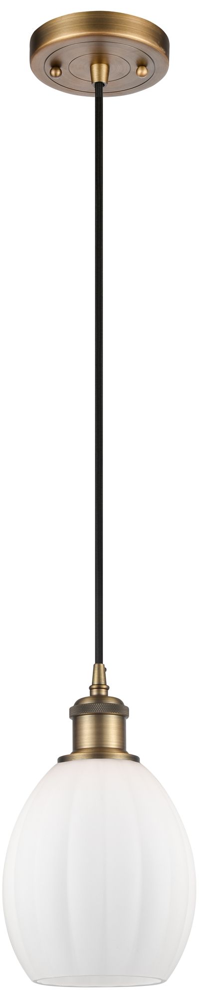 Eaton 6" Brushed Brass Cord Hung Mini Pendant w/ Matte White Shade