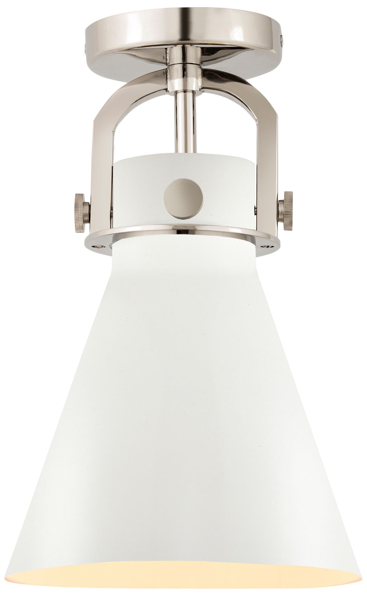 Newton Metal Cone 8" Wide Polished Nickel Flush Mount w/ Matte White S