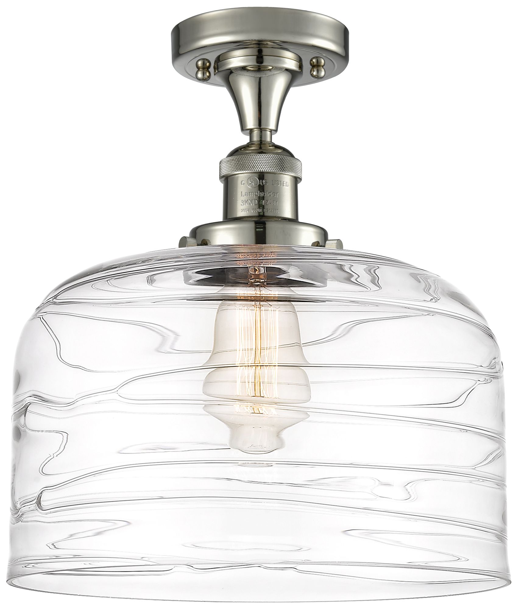 Bell 12" LED Semi-Flush Mount - Polished Nickel - Clear Deco Swirl Sha