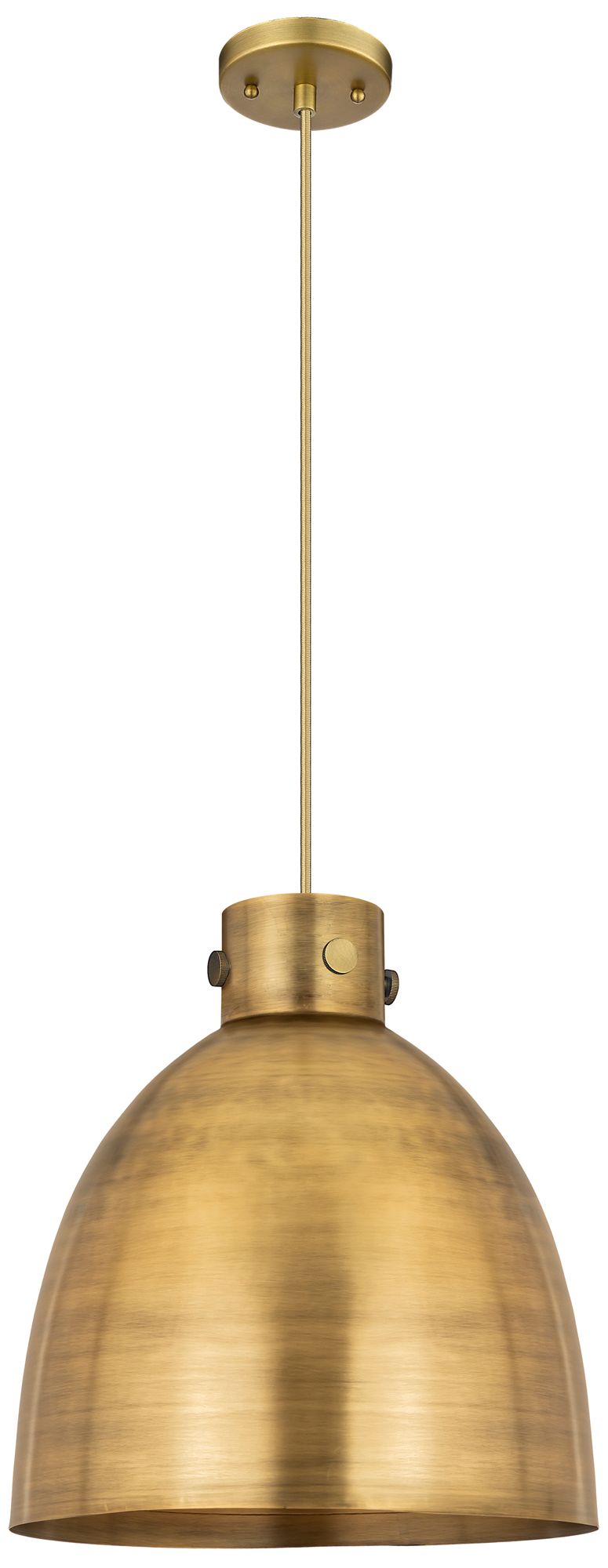 Newton Metal Bell 14"W Brushed Brass Corded Pendant w/ Brushed Brass S