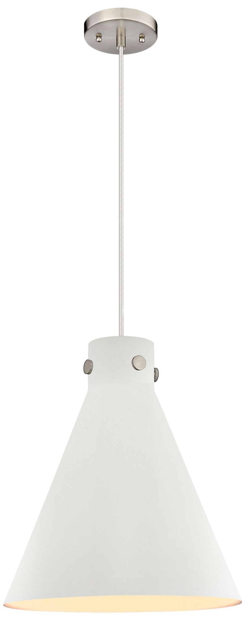 Newton Metal Cone 14" Wide Satin Nickel Corded Pendant w/ Matte White