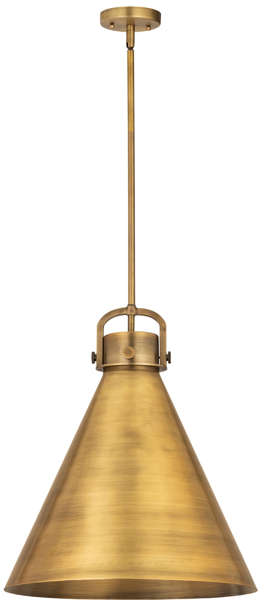 Newton Metal Cone 18"W Brushed Brass Stemmed Pendant w/ Brushed Brass