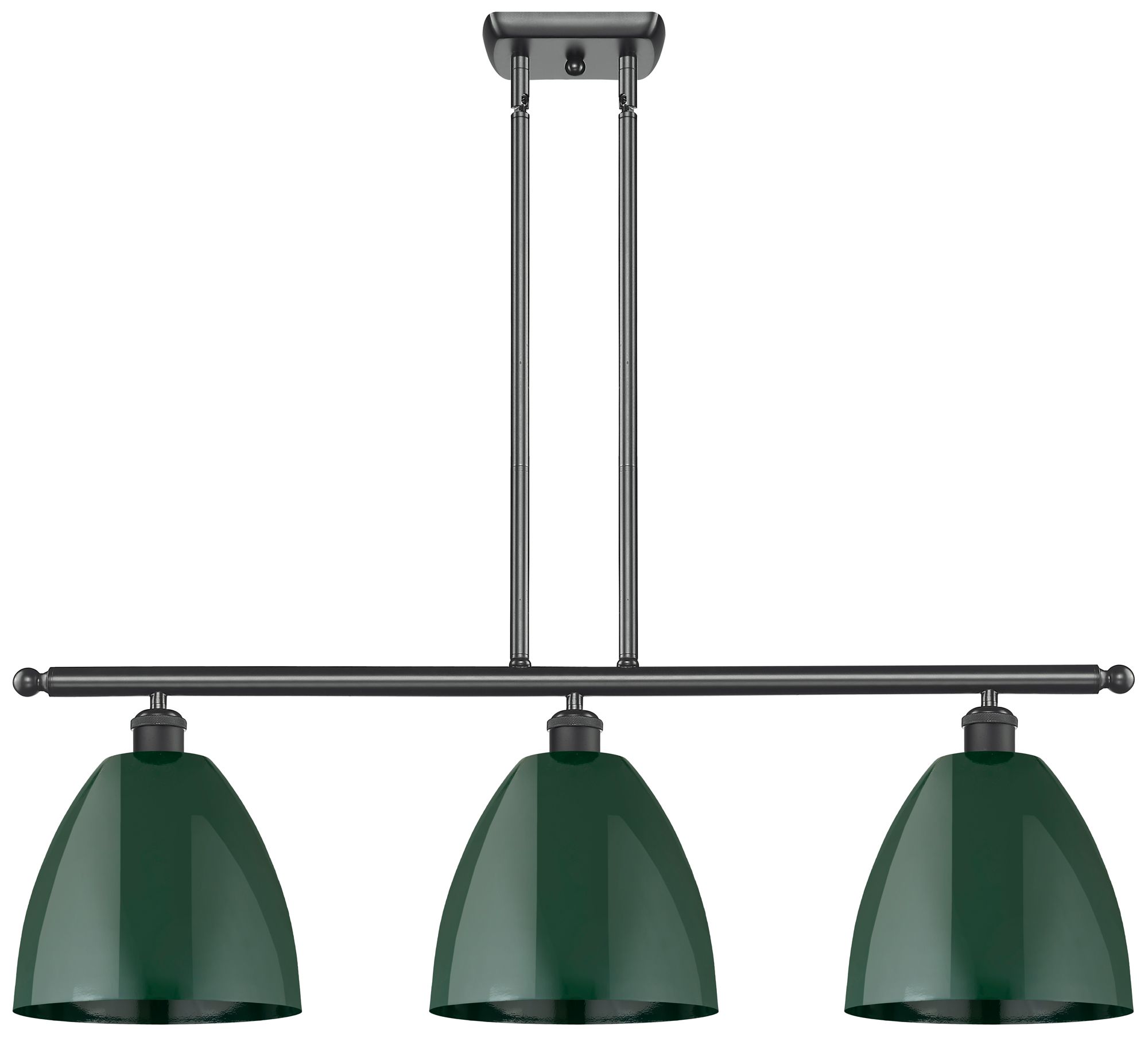 Plymouth Dome 36" Wide 3 Light Matte Black Island Light w/ Green Shade
