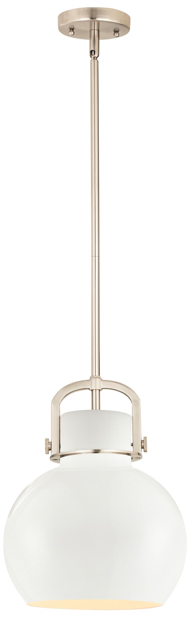 Newton Metal Sphere 10"W Satin Nickel Stemmed Pendant w/ Matte White S