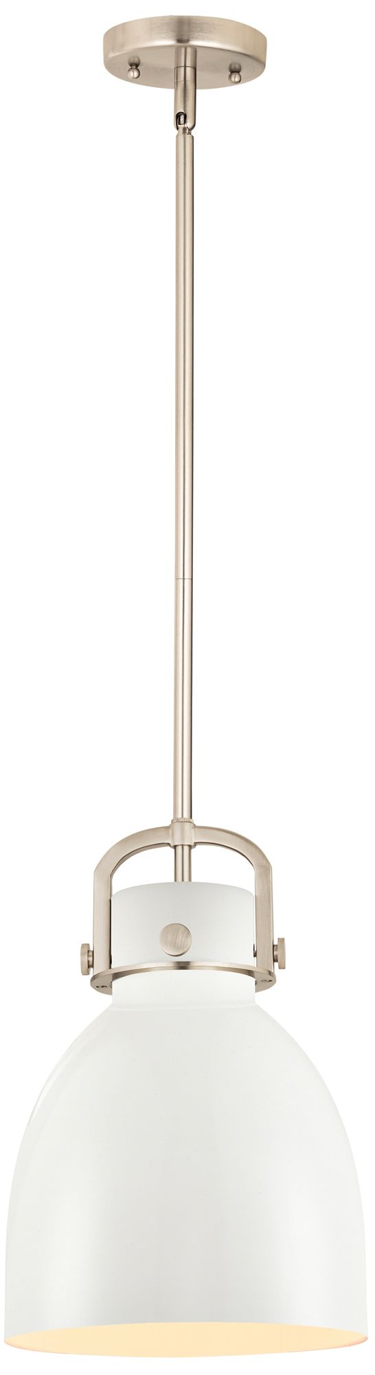 Newton Metal Bell 10"W Satin Nickel Stemmed Pendant w/ Matte White Sha