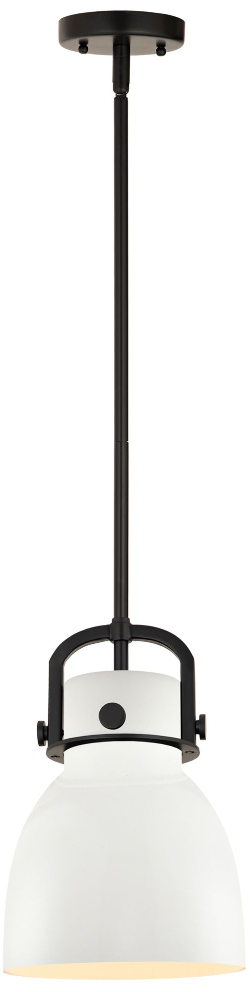 Newton Metal Bell 8" Wide Matte Black Stemmed Pendant w/ Matte White S