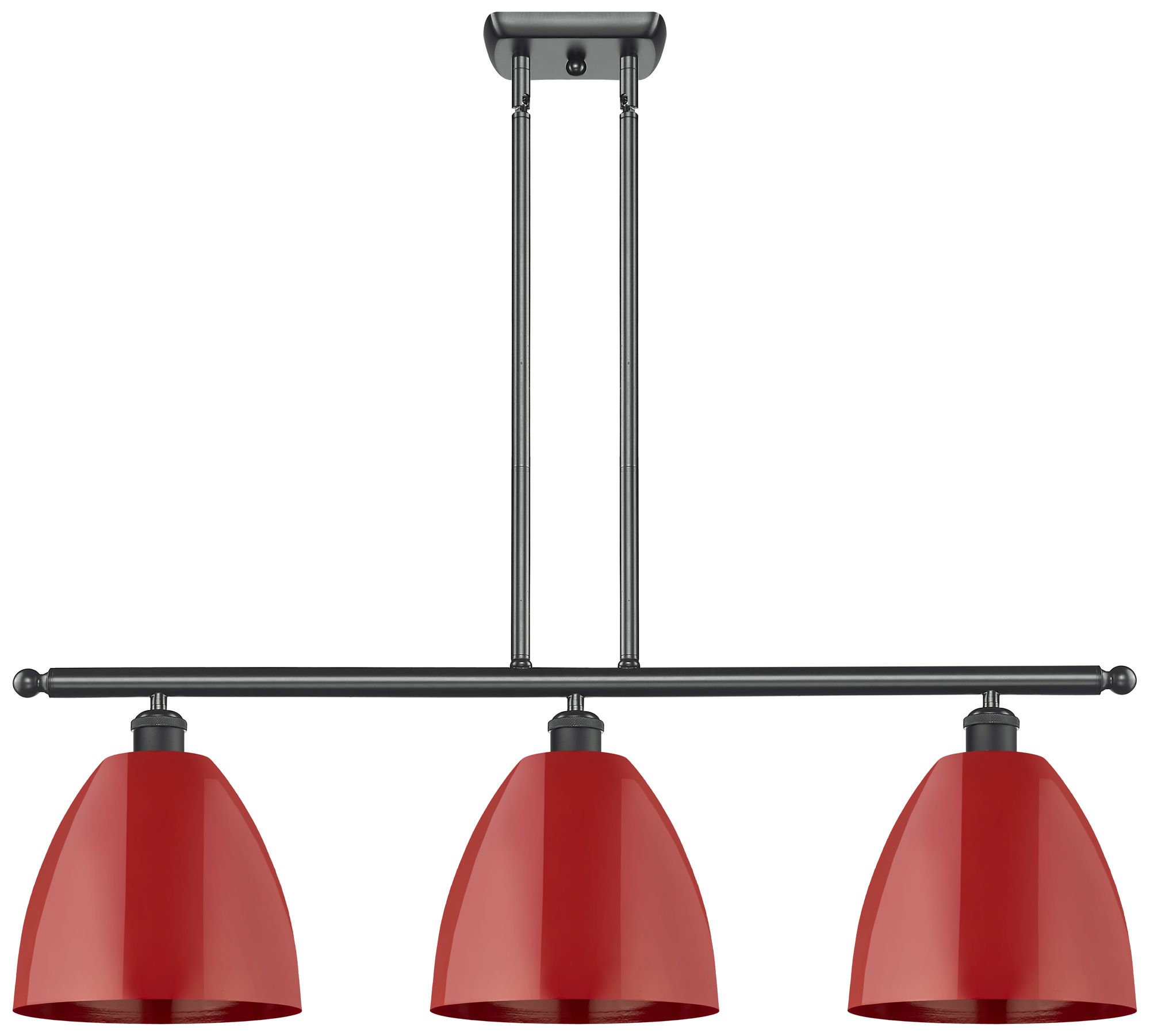 Plymouth Dome 36" Wide 3 Light Matte Black Island Light w/ Red Shade