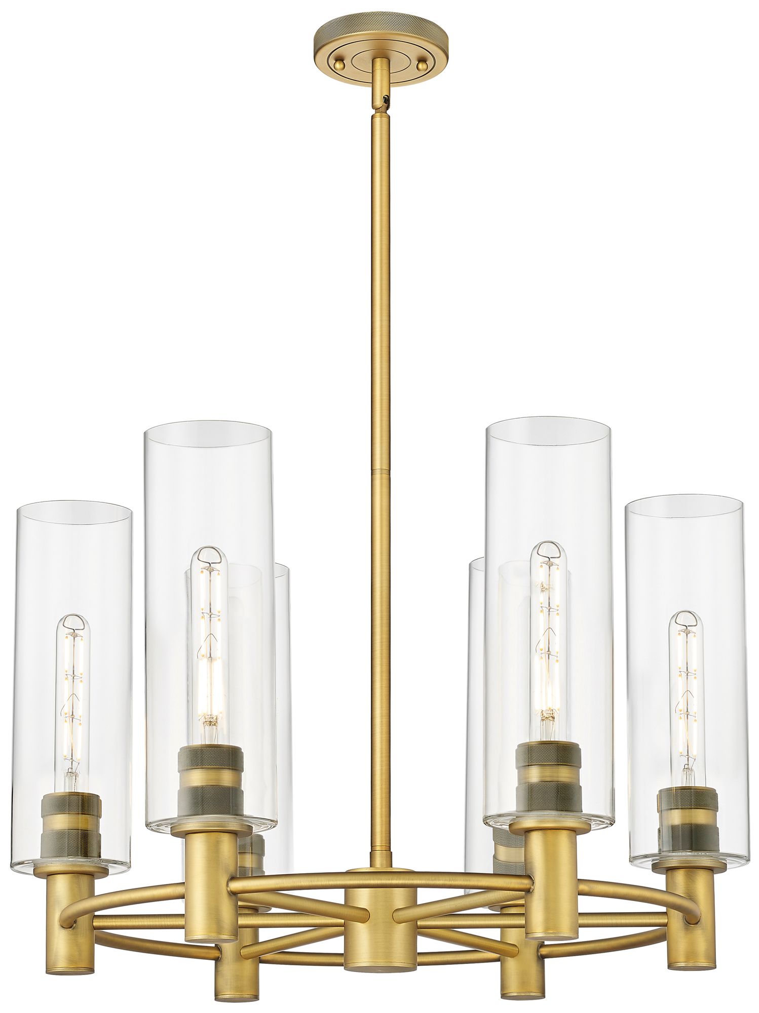 Crown Point 24"W 6 Light Brushed Brass Stem Hung Chandelier w/ Clear S