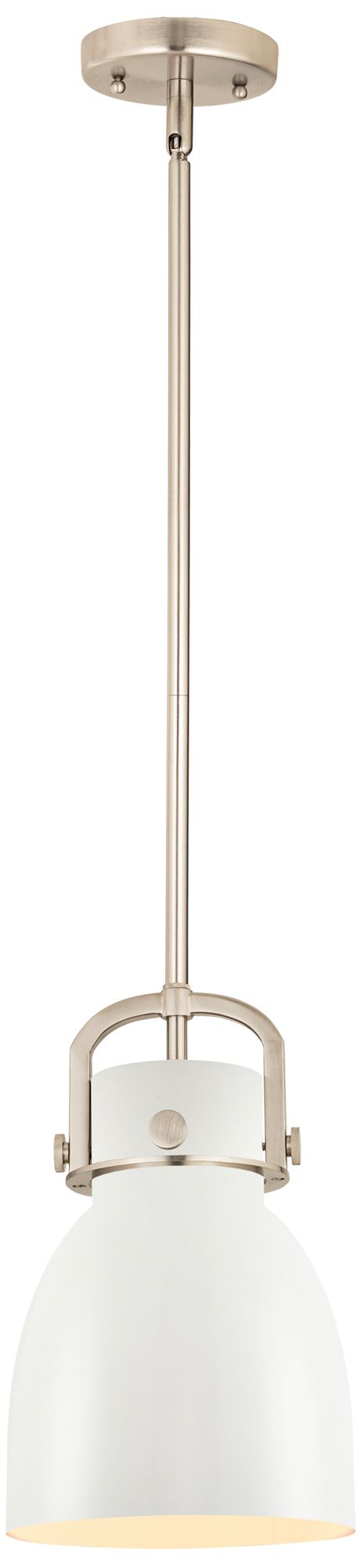 Newton Metal Bell 8" Wide Satin Nickel Stemmed Pendant w/ Matte White