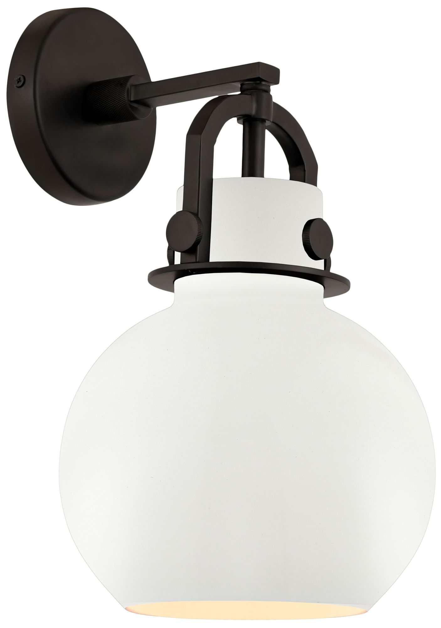 Newton Metal Sphere 14.25" High Matte Black Sconce With Matte White Sh