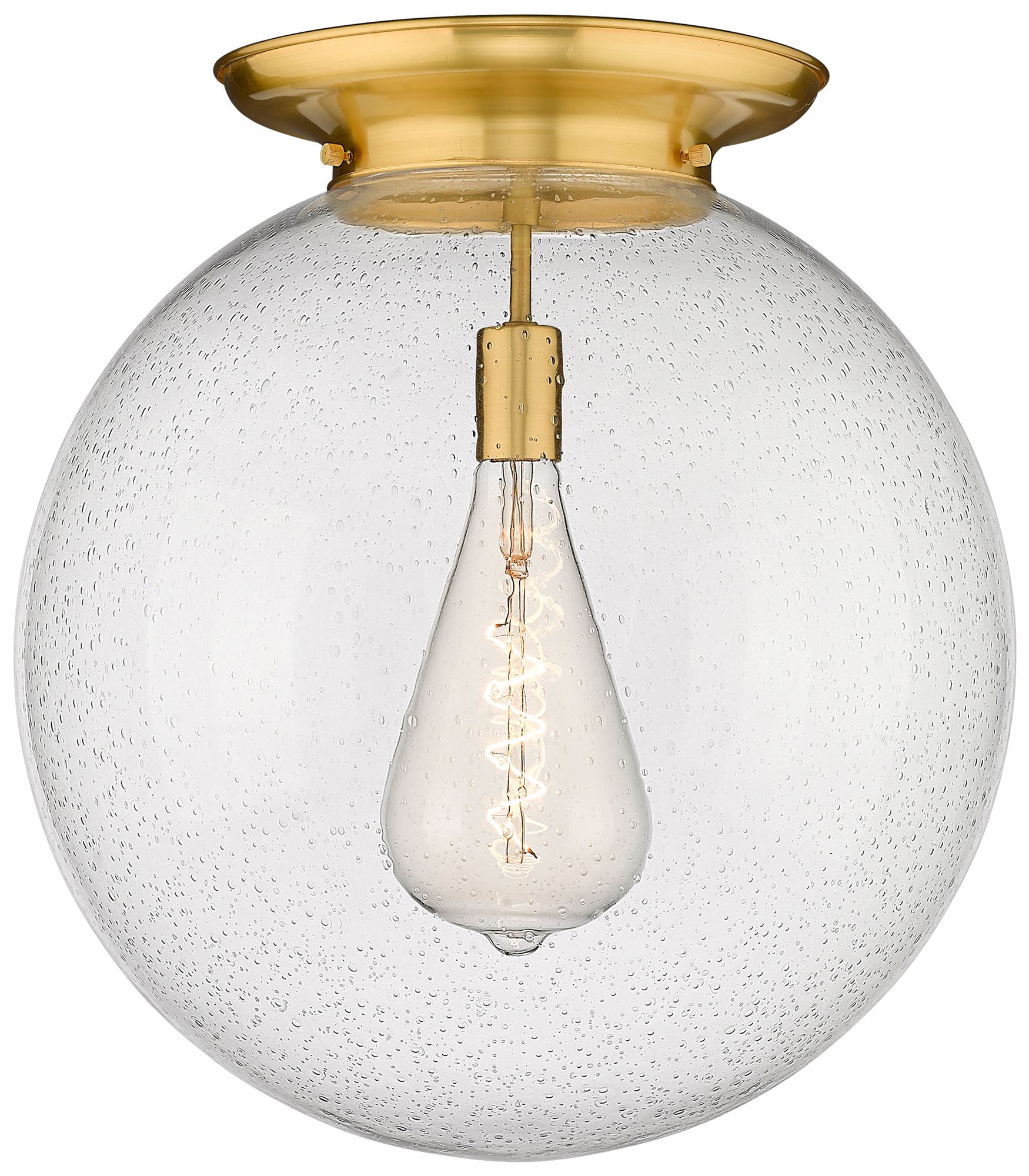 Beacon 17.75" Wide Satin Gold Flush Mount With Seedy Glass Shade