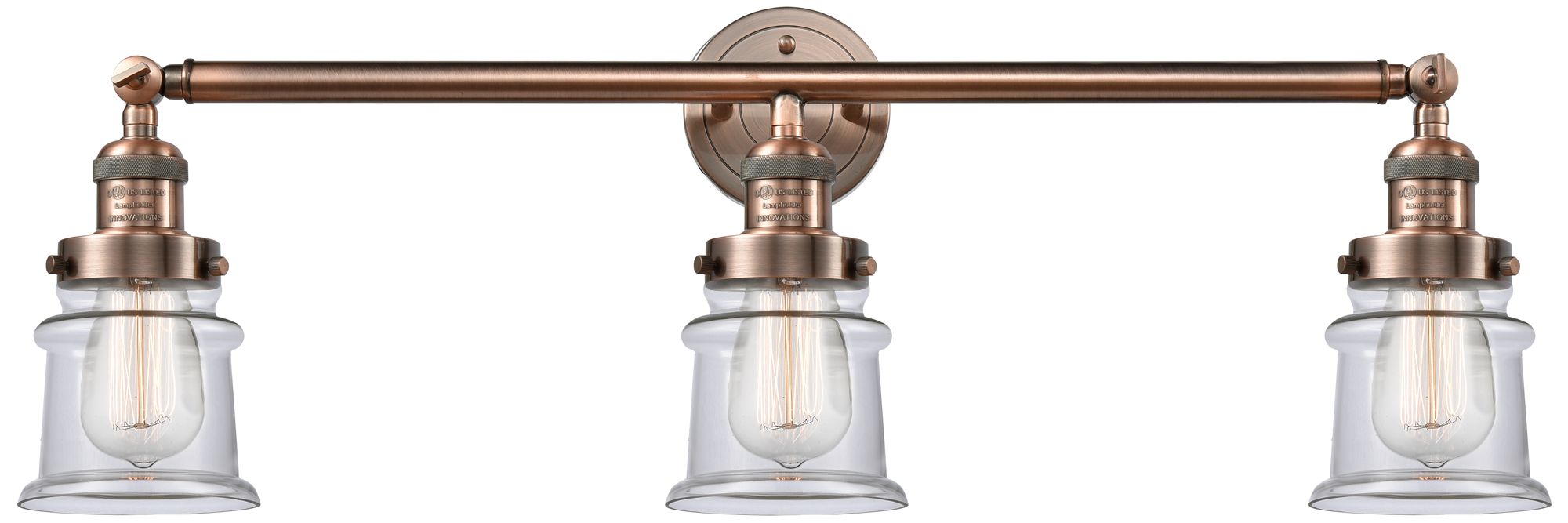 Canton 30" 3-Light Antique Copper Bath Light w/ Clear Shade