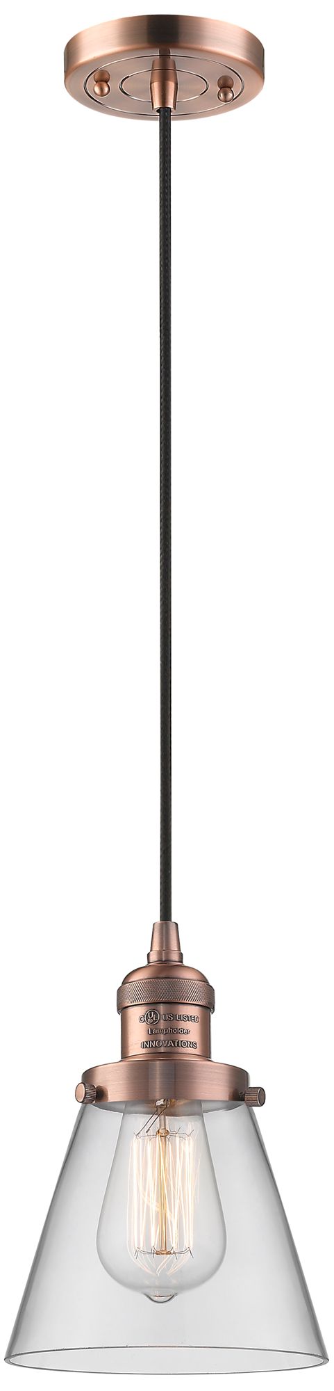 Franklin Restoration Cone 6" Copper Corded Mini Pendant w/ Clear Shade