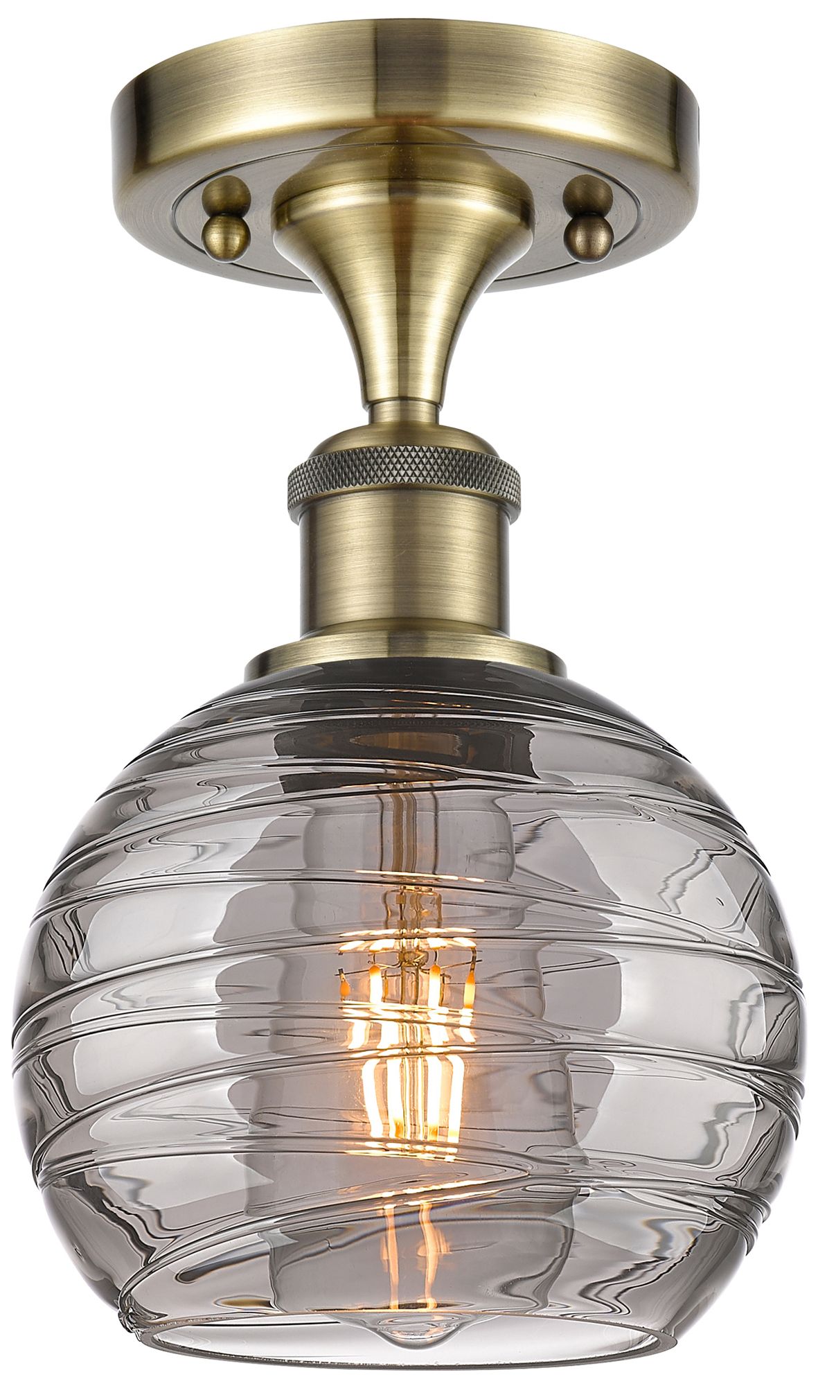 Ballston Athens 5.88"W Antique Brass Semi-Flush Mount w/ Smoke Swirl S