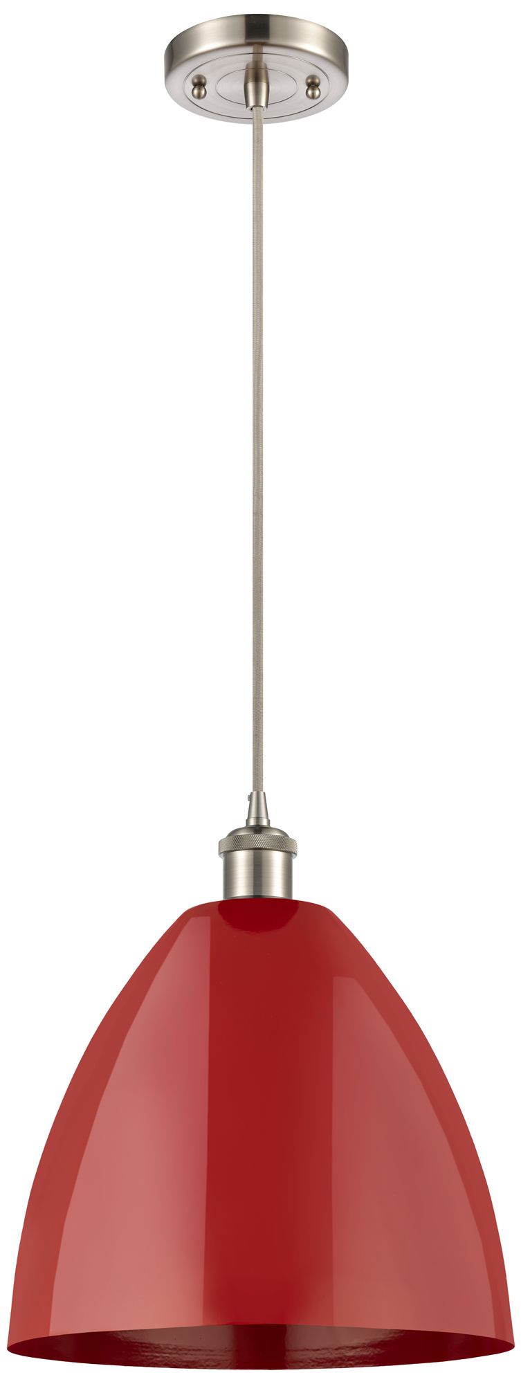 Ballston Plymouth Dome 12"W Brushed Nickel Corded Mini Pendant w/ Red