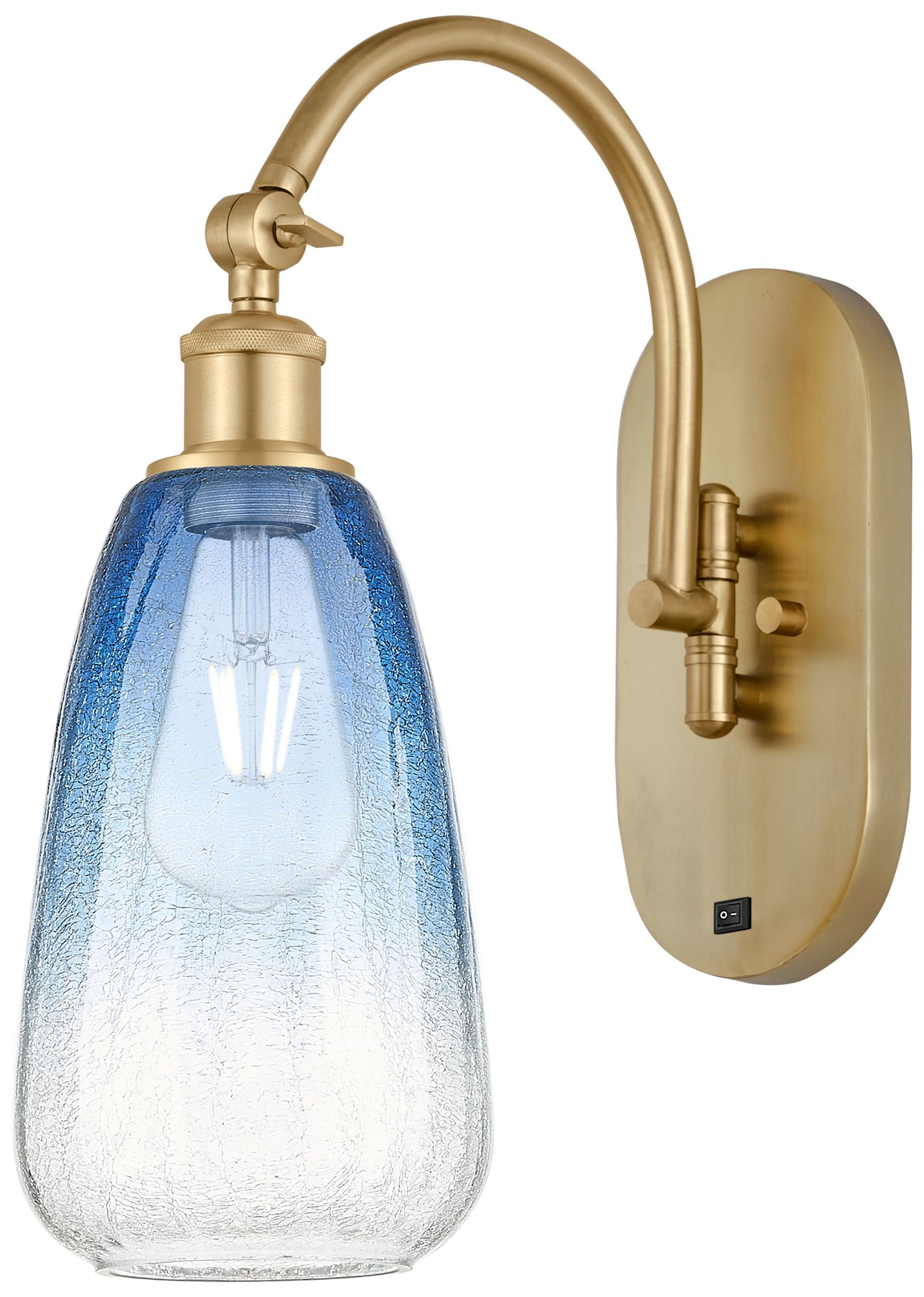 Brookhaven Almond 17"H Satin Gold Swiveling Sconce w/ Sapphire Blue Shade