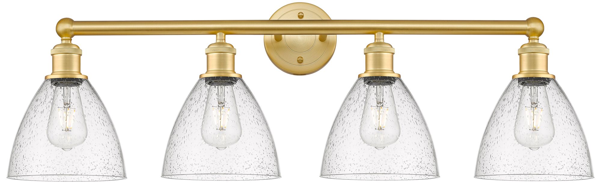 Bristol Glass 34.5"W 4 Light Satin Gold Bath Vanity Light With Seedy S