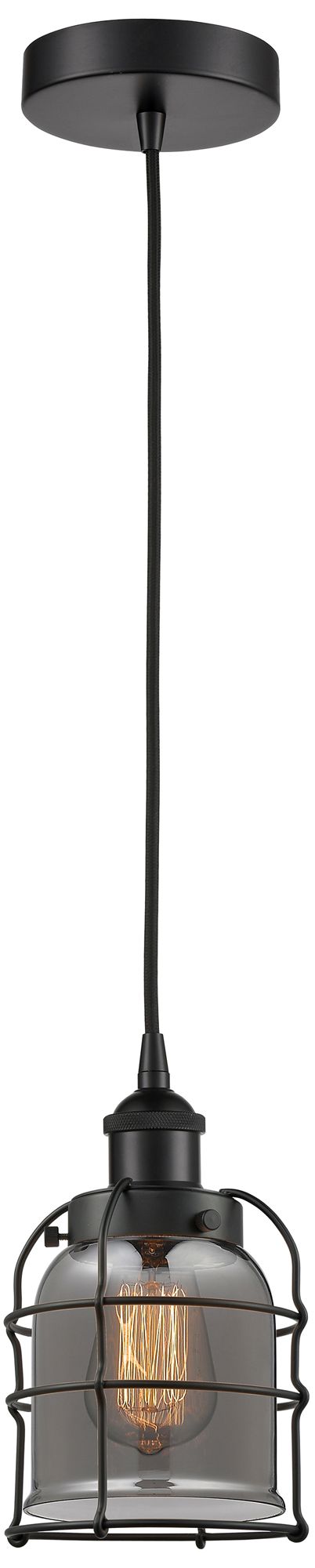 Bell Cage 6"W Matte Black Corded Mini Pendant w/ Plated Smoke Shade