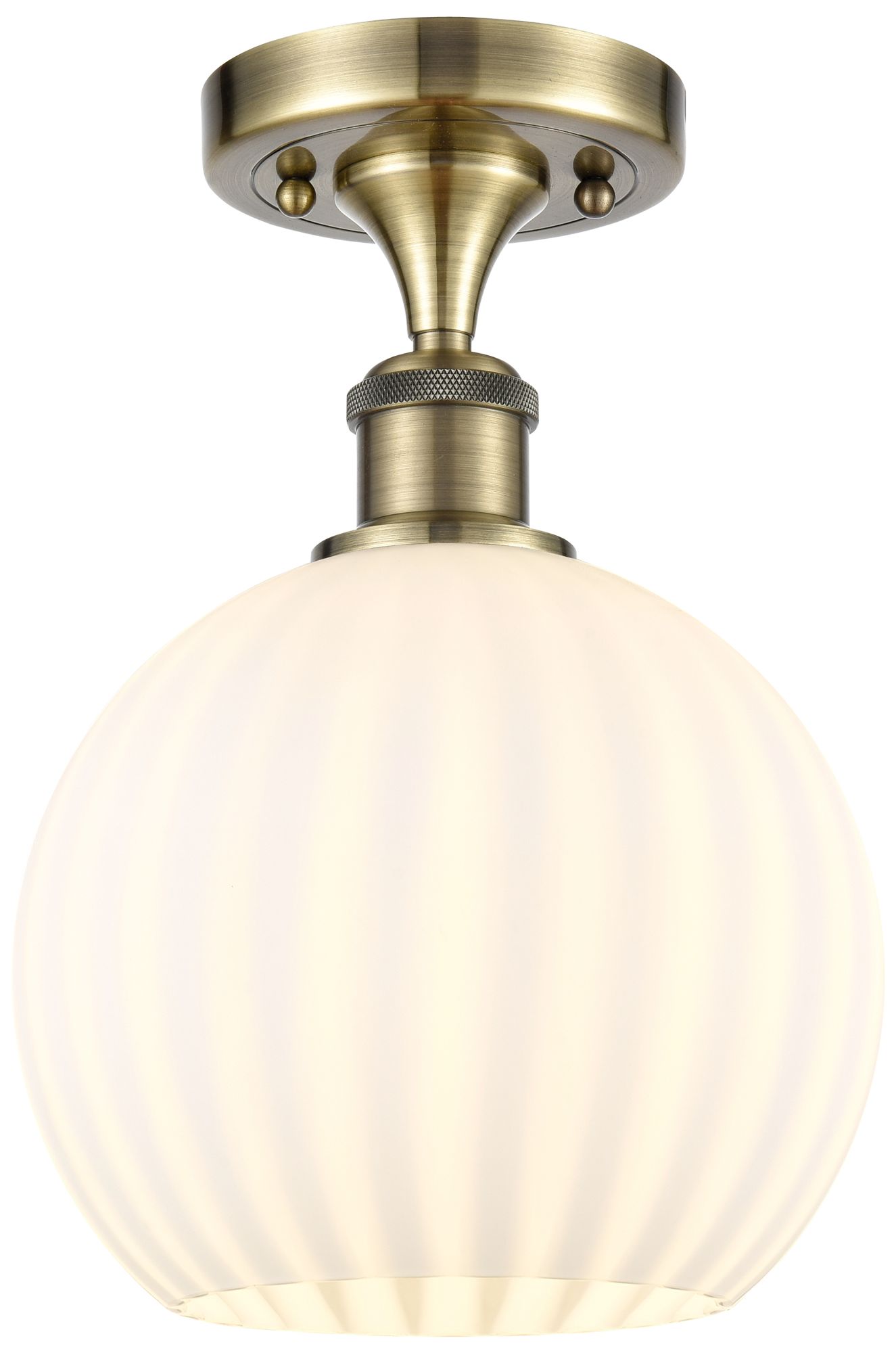 Ballston 8" Wide Antique Brass Semi-Flush Mount With White Venetian Sh