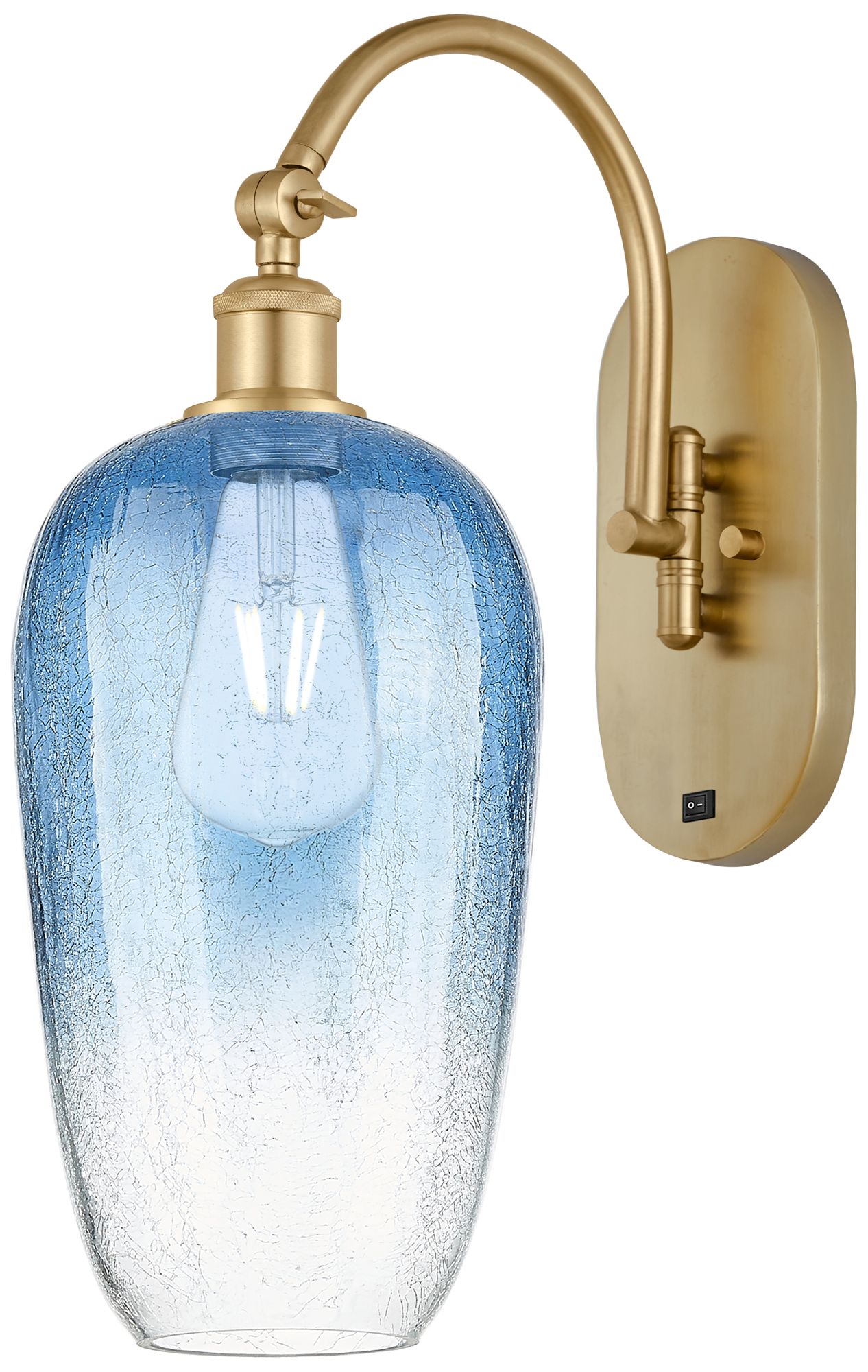 Brookhaven Flute 19"H Satin Gold Swiveling Sconce w/ Sapphire Blue Shade