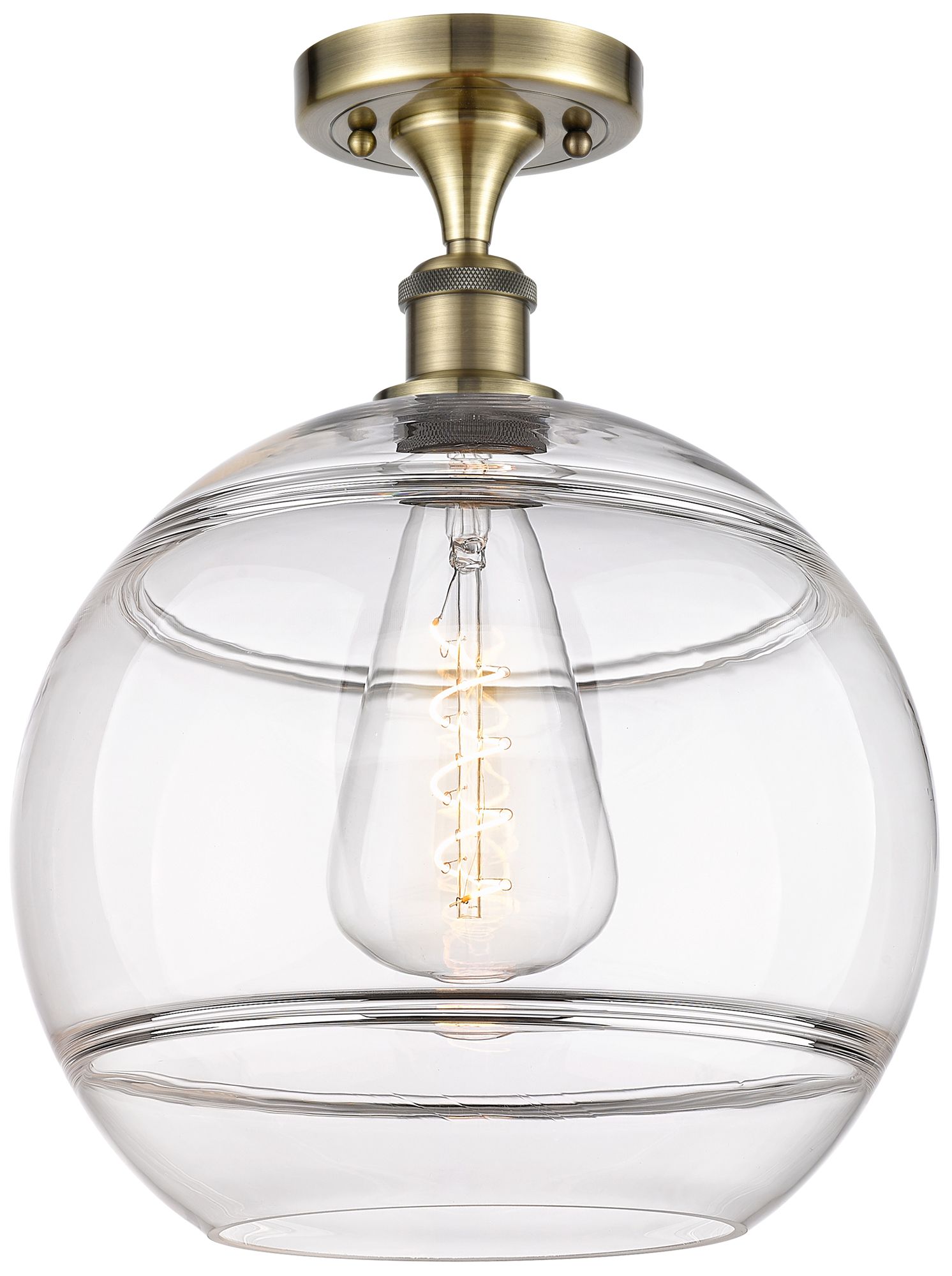 Ballston Rochester 12" Wide Antique Brass Semi-Flush Mount With Clear
