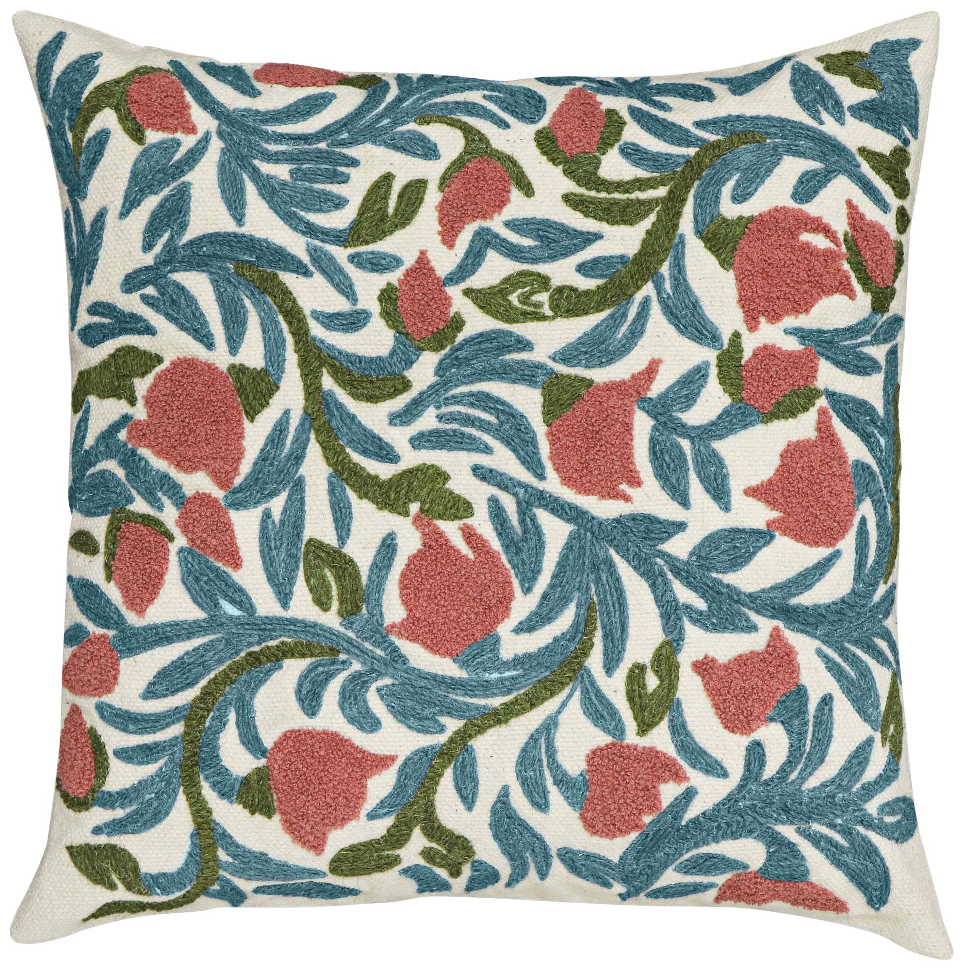 Tulip Embroidered Floral 20" Square Accent Cushion