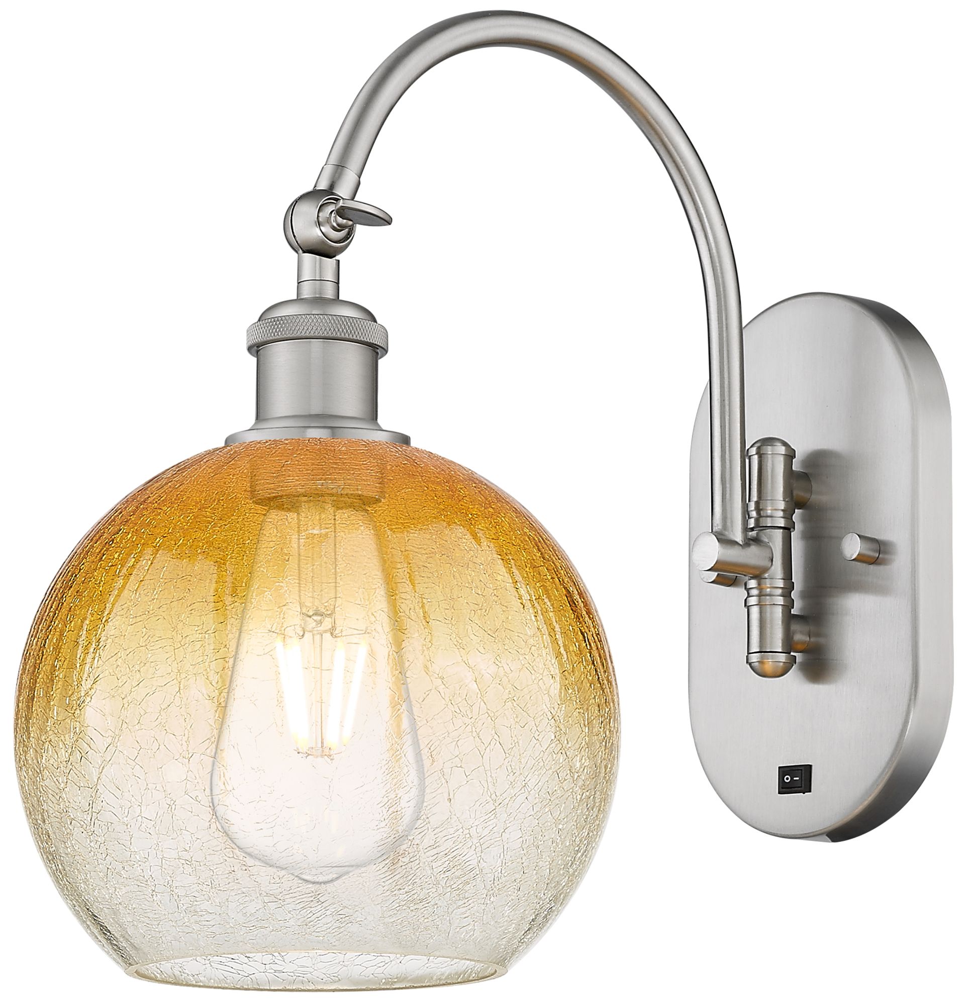 Brookhaven Globe 14"H Brushed Satin Nickel Swiveling Sconce w/ Amber Shade