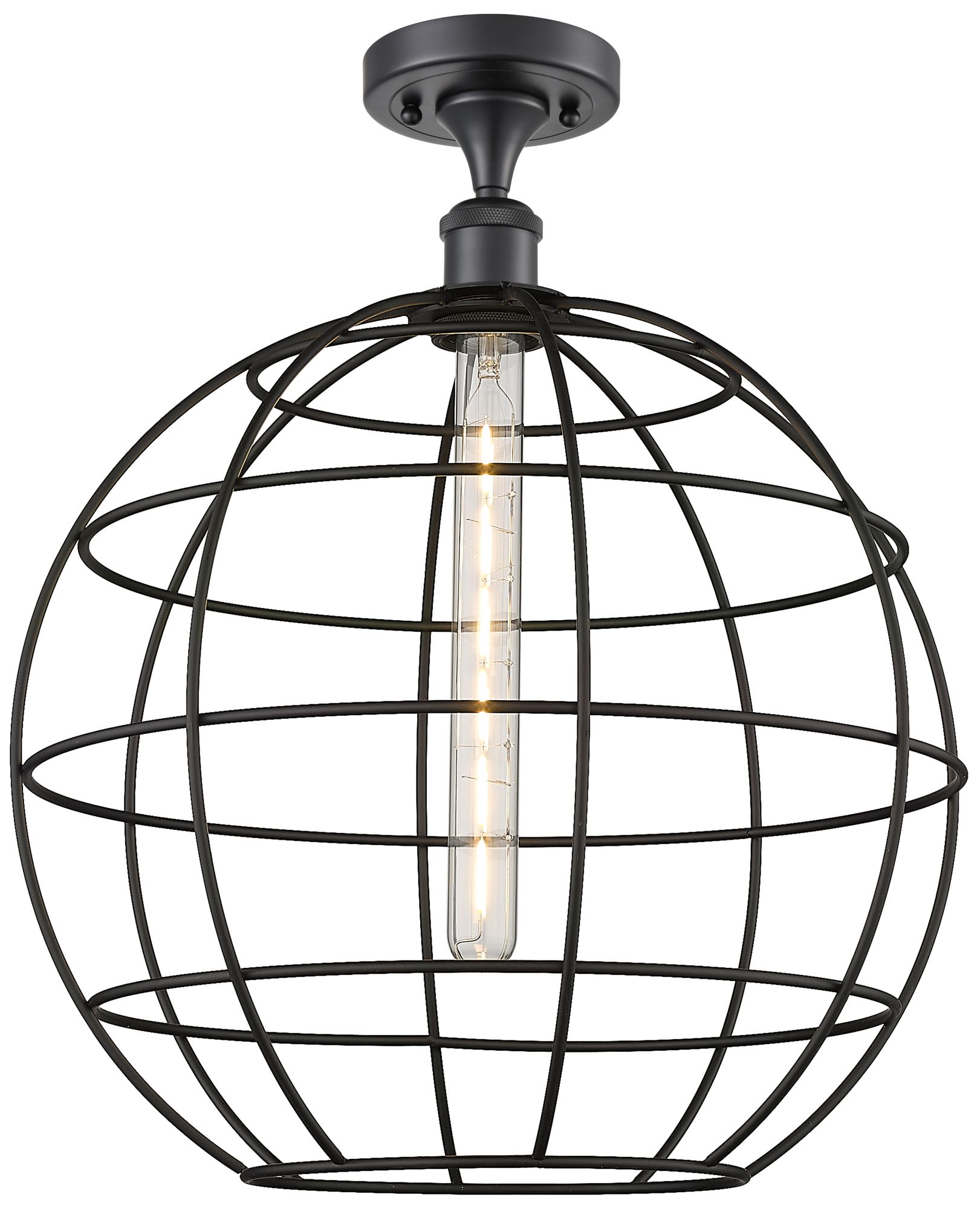 Ballston Lake Placid 16" Wide Matte Black Semi Flush Mount With Black