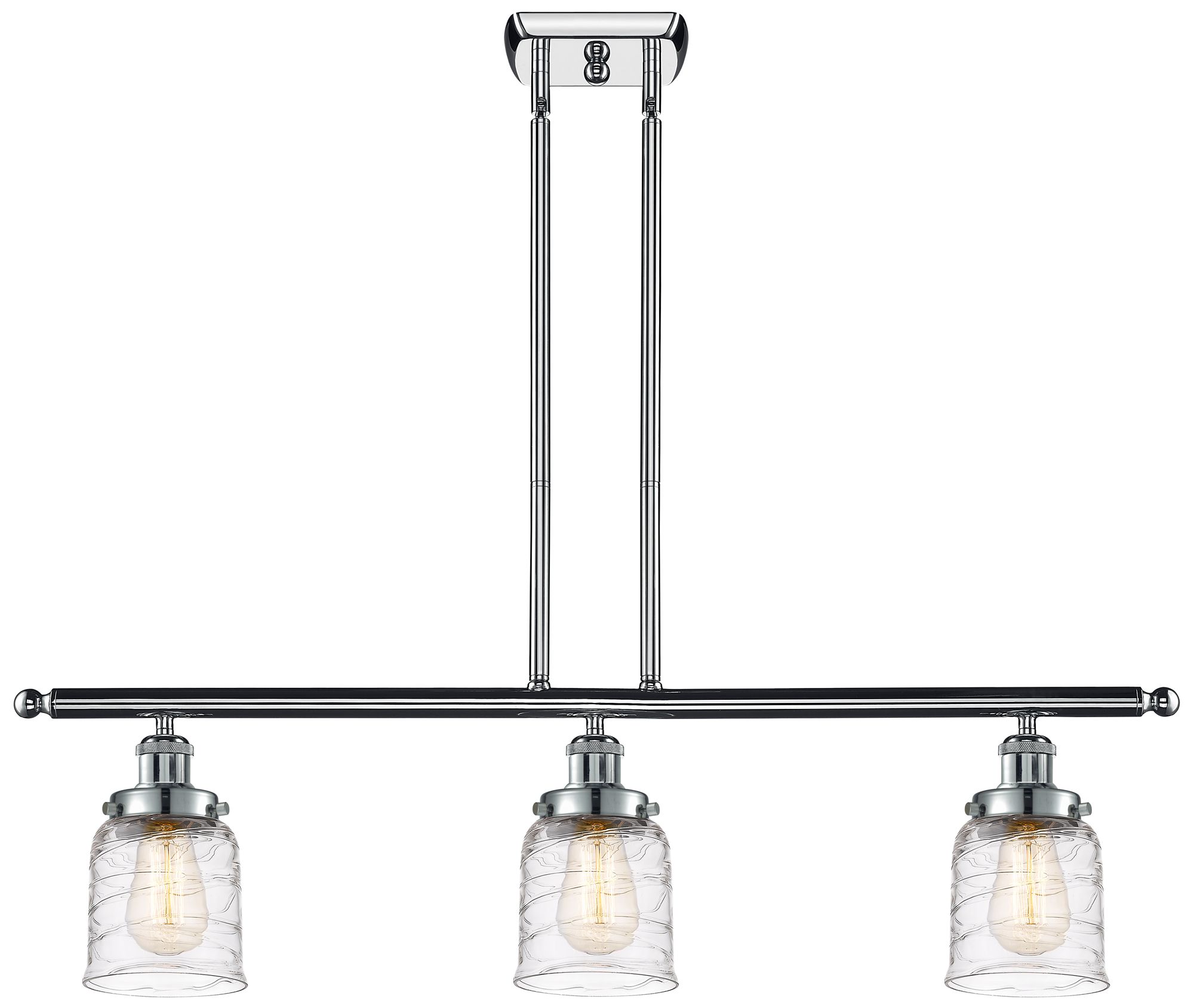 Bell 3 Light 36" LED Island Light - Polished Chrome - Deco Swirl Shad