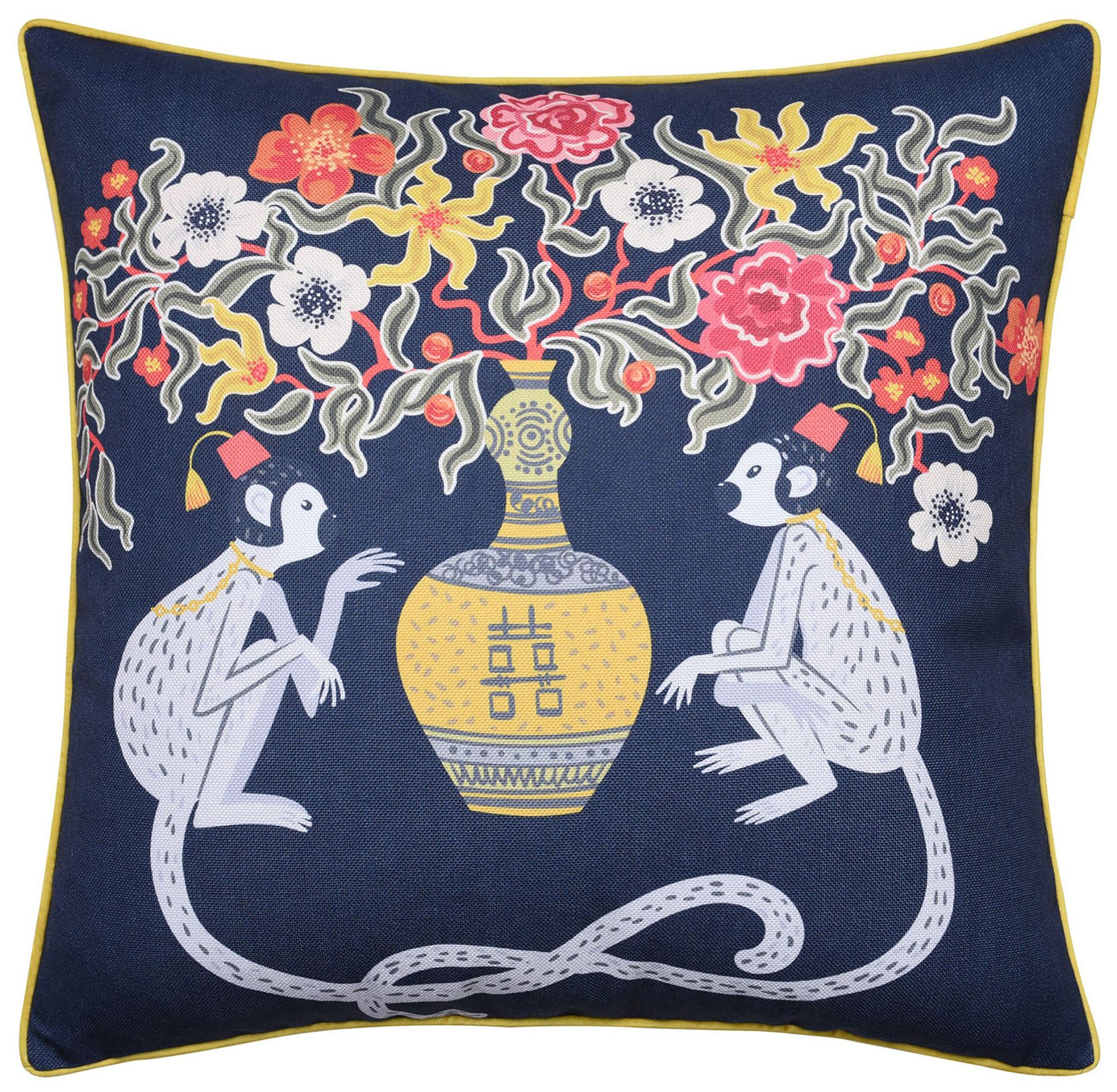 Dann Foley 24" x 24 Floral Print and Maroon Velvet Double Sided Pillow