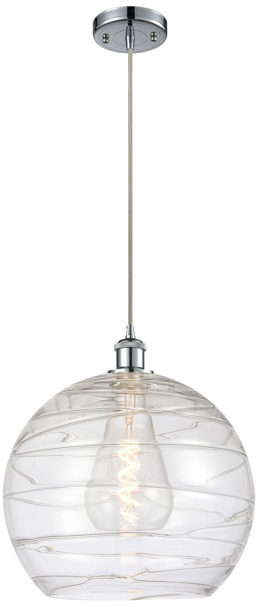 Ballston Athens 14" Polished Chrome Pendant With Clear Deco Swirl Shad