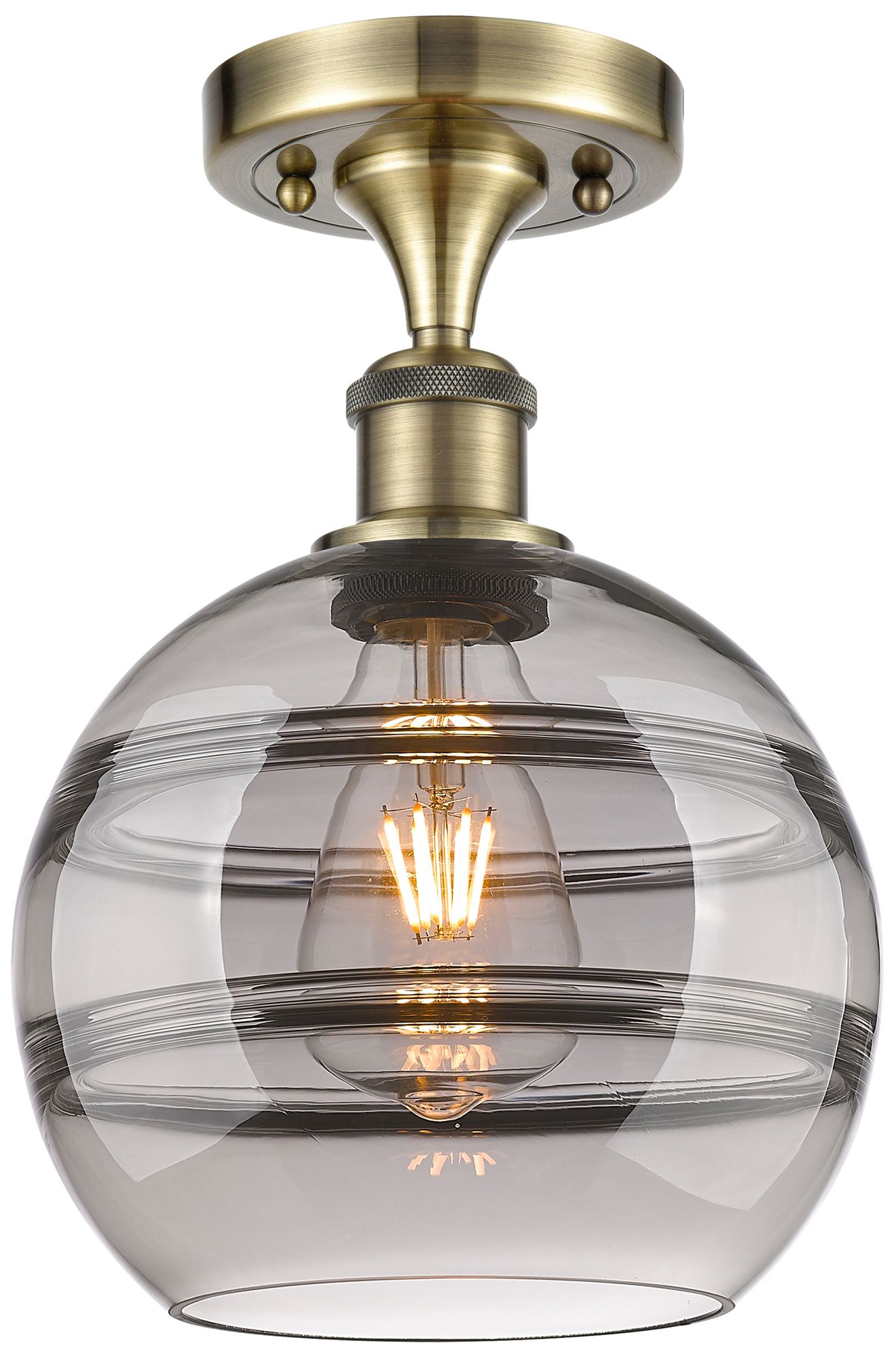 Ballston Rochester 8"W Antique Brass Semi-Flush Mount w/ Light Smoke S