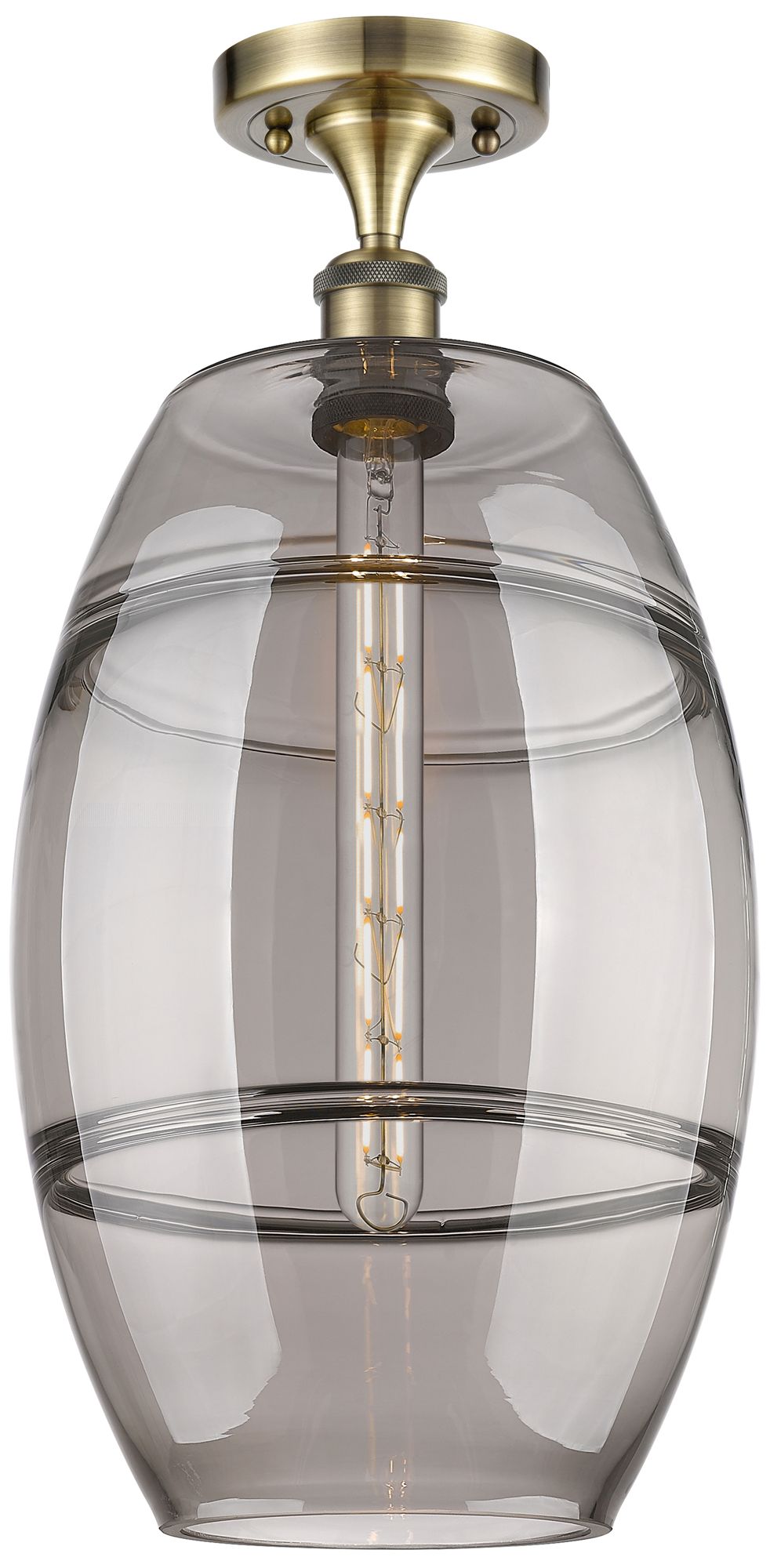 Ballston Vaz 10" Wide Antique Brass Semi-Flush Mount With Light Smoke
