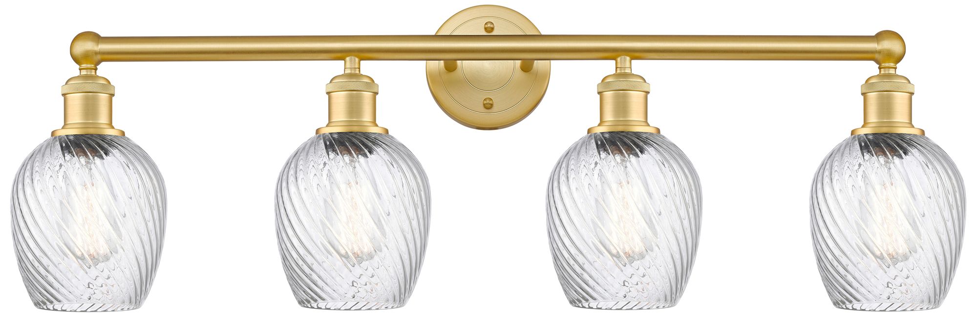 Salina 32"W 4 Light Satin Gold Bath Light With Clear Spiral Fluted Sha