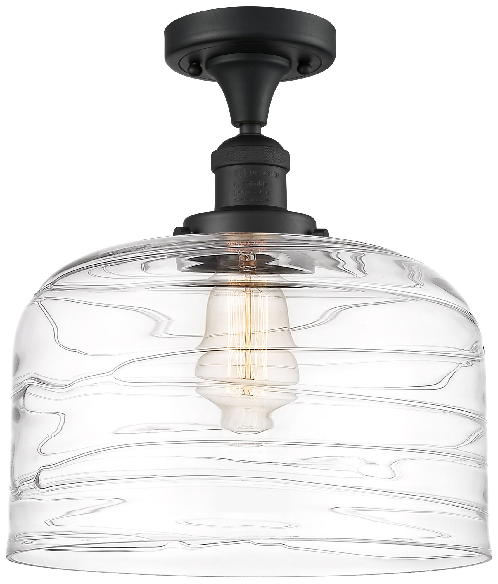Bell 12" Semi-Flush Mount - Matte Black - Clear Deco Swirl Shade