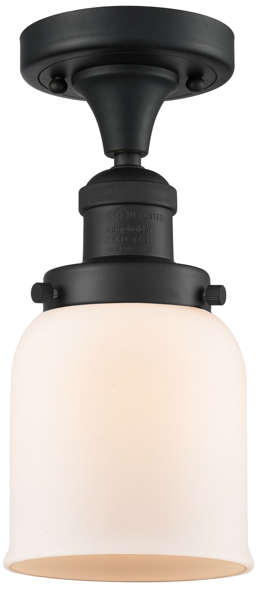 Bell 5" Wide Matte Black Semi Flush Mount w/ Matte White Shade