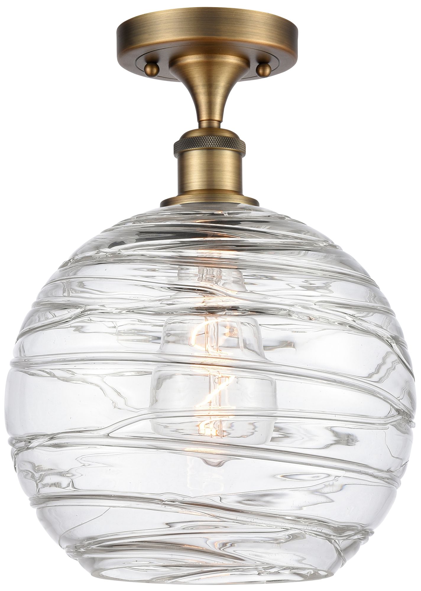 Athens Deco Swirl 10"W Brushed Brass Semi Flush Mount w/ Deco Swirl Sh