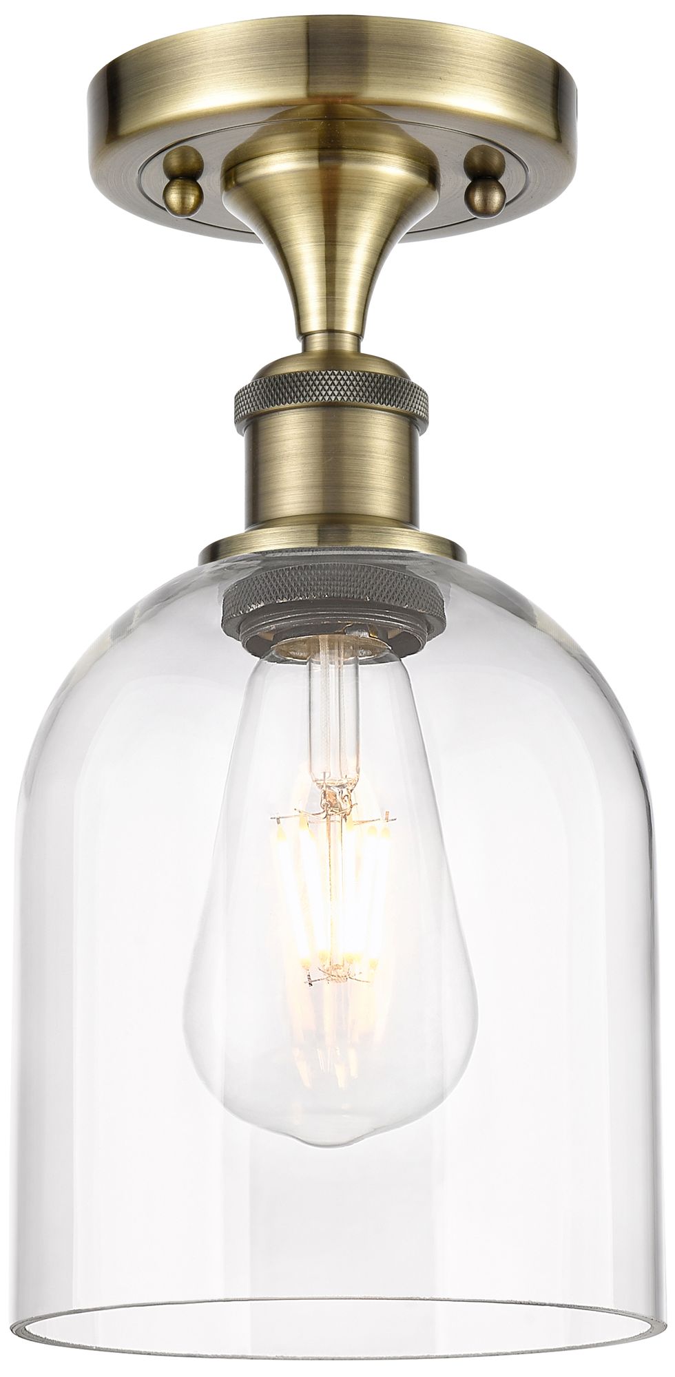 Ballston Bella 5.5"W Antique Brass Semi-Flush w/ Clear Deco Swirl Shad