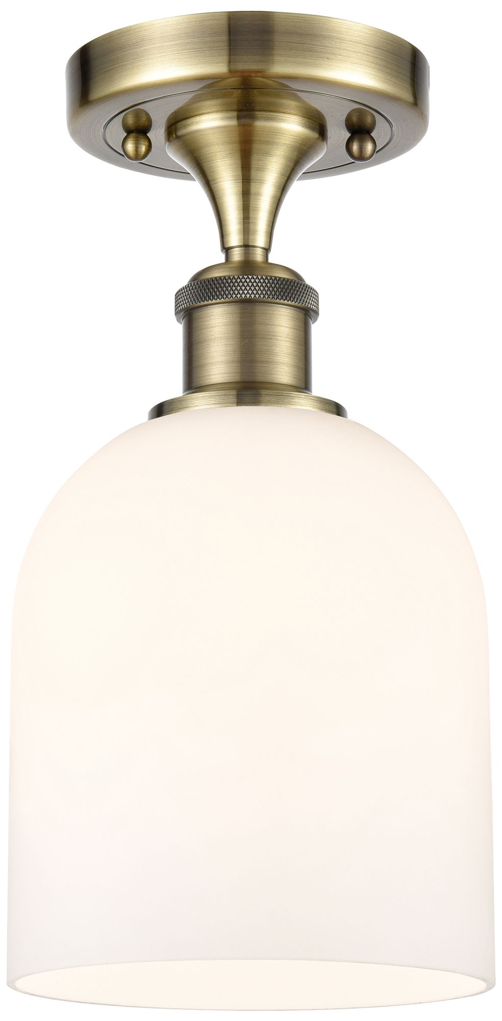 Ballston Bella 5.5"W Antique Brass Semi-Flush Mount w/ Glossy White Sh