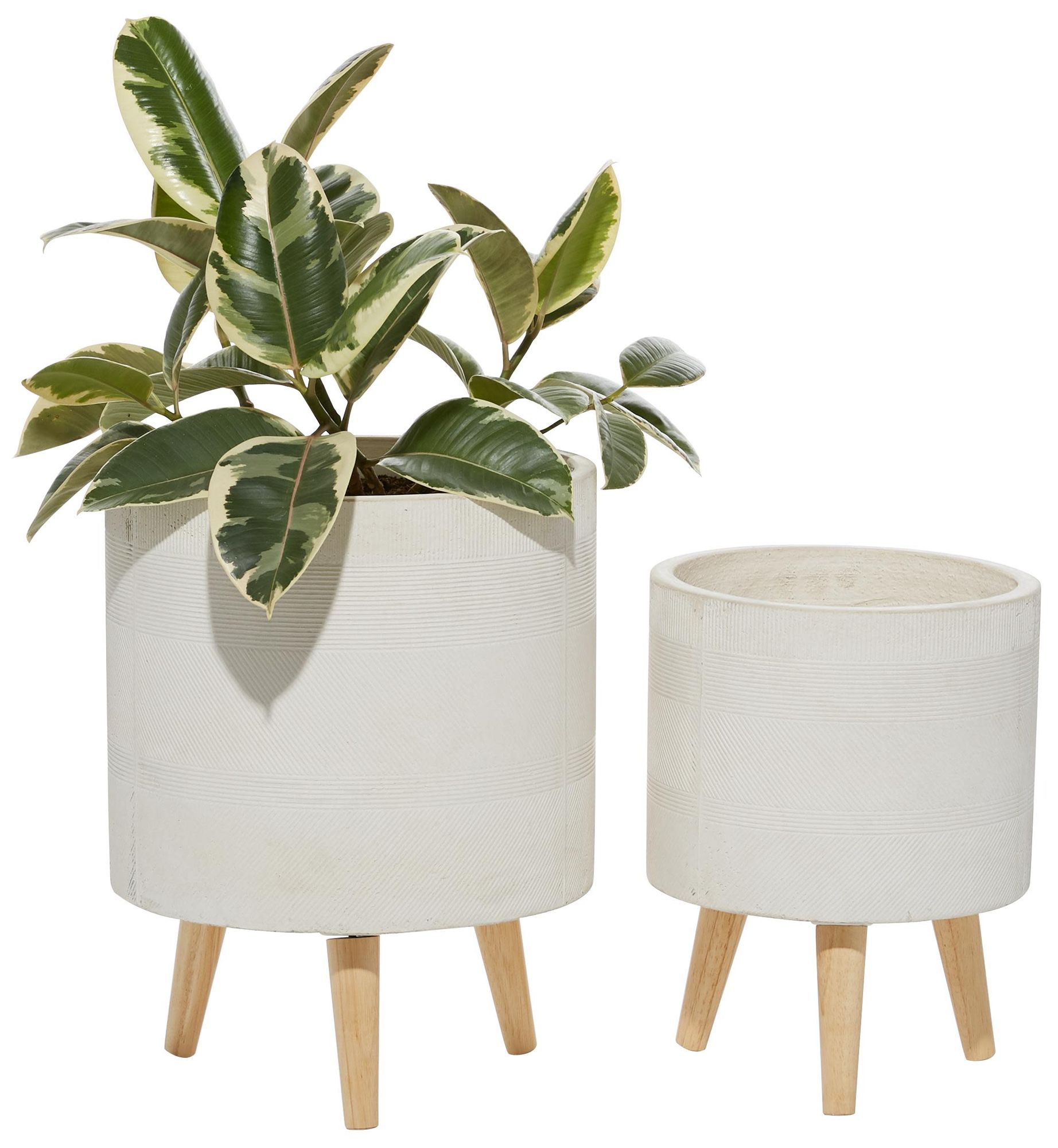 White Magnesium Oxide Contemporary Planter, S/2 16", 13"H