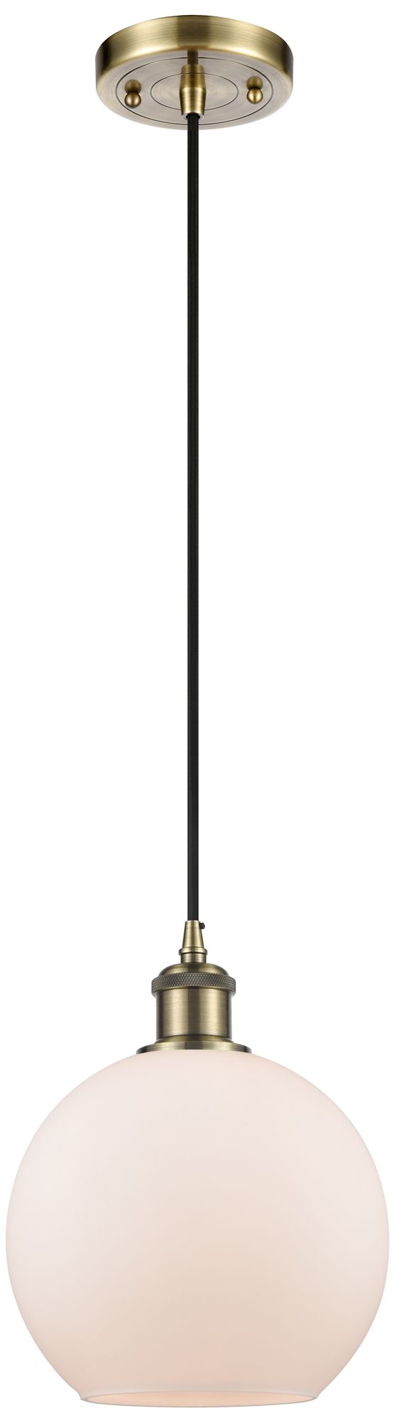 Ballston Athens 8"W Cord Hung Antique Brass Mini Pendant w/ White Shad